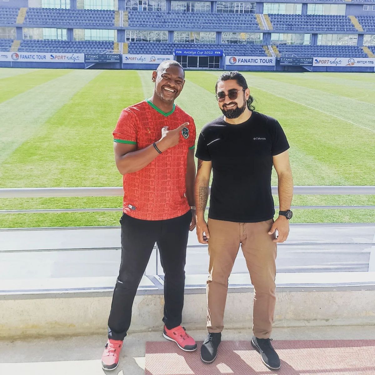 Fotoda: Burundi Futbol Federasiyasının vitse-prezidenti Mustafa Samuqabo və Rəsul Allahverdiyev