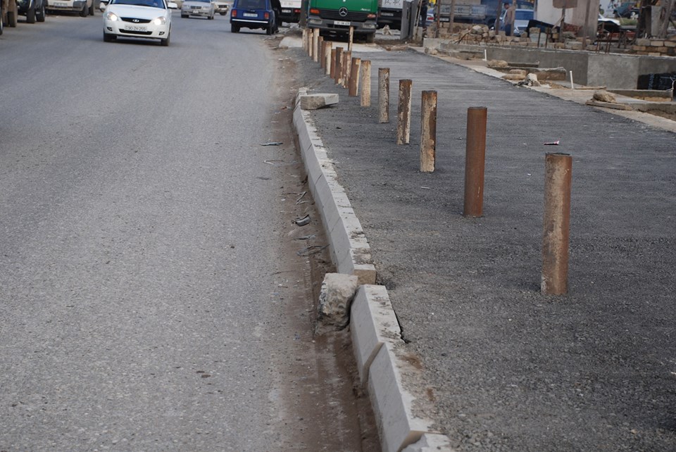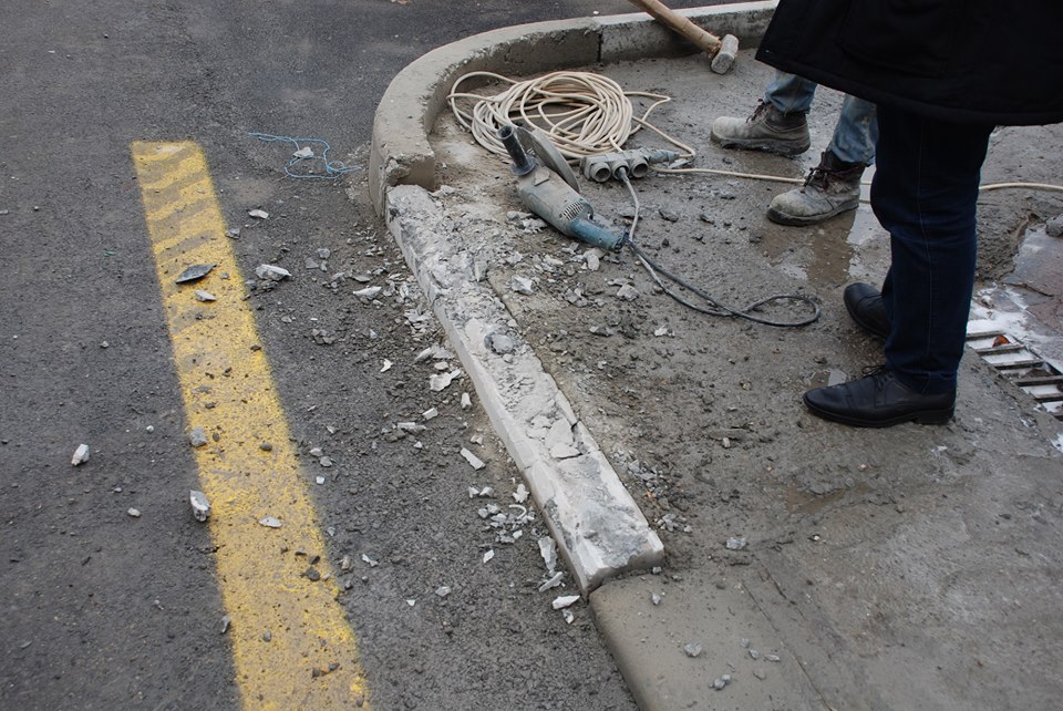 Aşağıdakı fotolarda avtomobil yuma məntəqəsinə və tikinti materialları satılan mağazalara giriş-çıxışı daha da "asanlaşdırmaq" və ya genişləndirmək üçün obyekt sahibləri səki daşlarını belə dağıdırlar”.