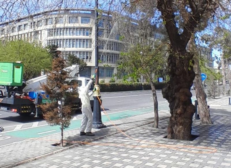 Paytaxtda Ağ Amerika kəpənəklərinə qarşı profilaktika işləri davam edir.