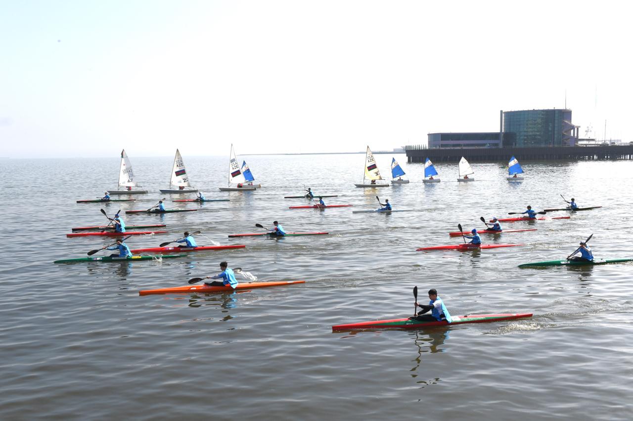 Daha sonra ardıcıl olaraq yelkənli qayıqların, kayak, kanoe, akademik avarçəkmə və draqon qayıqlarının sıra ilə keçidi baş tutub. Bulvar ərazisində isə yelkənli qayıq və avarçəkmə üçün xüsusi konsept trenajor alətlərində şəhər sakinlərinə özlərini sınamaq imkanı yaradılıb.