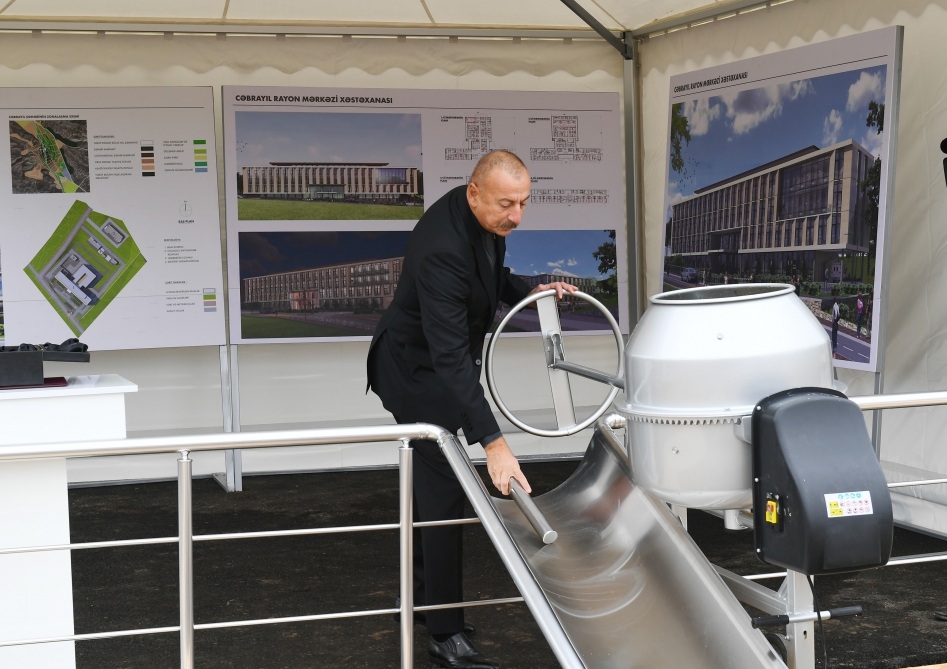 Dövlət başçısı Cəbrayıl rayon Mərkəzi Xəstəxanasının, məktəb binasının və Cəbrayıl şəhərində ilk çoxmənzilli yaşayış məhəlləsinin təməllərini qoyub.