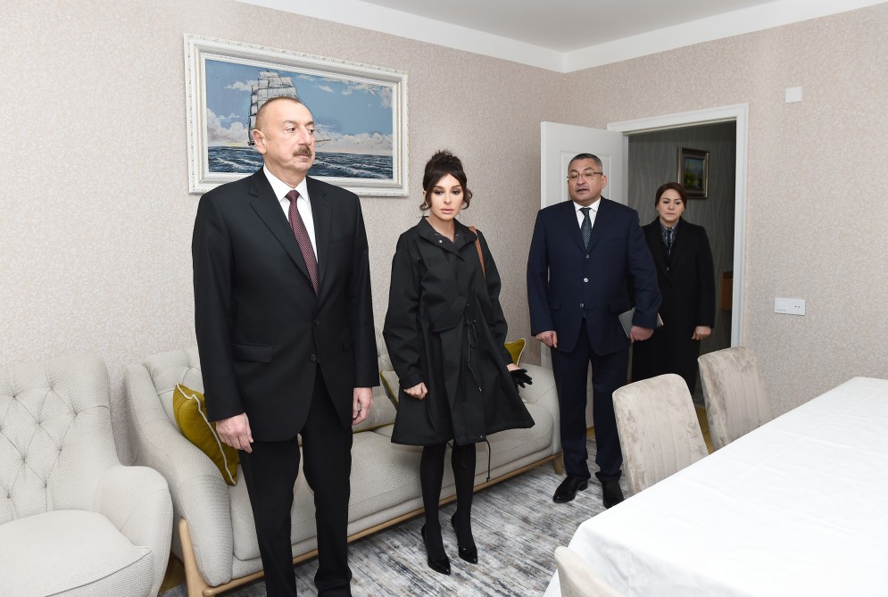Prezident İlham Əliyev və birinci xanım Mehriban Əliyeva yeni kompleksdəki mənzillərdə yaradılan şəraitlə tanış olublar.