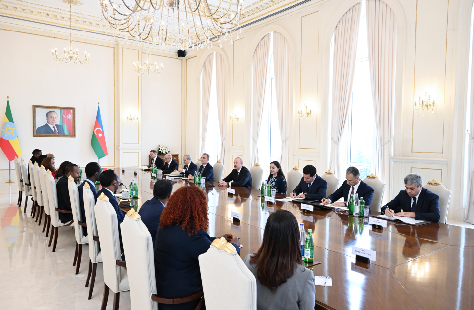 - Hörmətli cənab Baş nazir, hörmətli qonaqlar, Azərbaycana xoş gəlmisiniz. Çox şadam ki, bizi ziyarət edirsiniz. Bizim elə indicə cənab Baş nazirlə çox yaxşı söhbətimiz oldu və biz tərəfdaşlığımızın bir çox vacib sahələrini əhatə etdik. Mən cənab Baş nazirə bu yaxınlarda Efiopiyaya səfər etmiş qızım Leylaya göstərdiyi qonaqpərvərliyə görə minnətdarlığımı ifadə etdim. Bu səfər ona yaxşı, böyük təəssürat bağışladı. Yeri gəlmişkən, o, ilk dəfədir ki, nümayəndə heyətlərinin görüşündə iştirak edir və bu, onun Sizin ölkənizə, Sizin xalqınıza olan çox xüsusi münasibəti ilə bağlıdır. Mən Sizi bütün nailiyyətləriniz münasibətilə təbrik etmək istəyirəm.