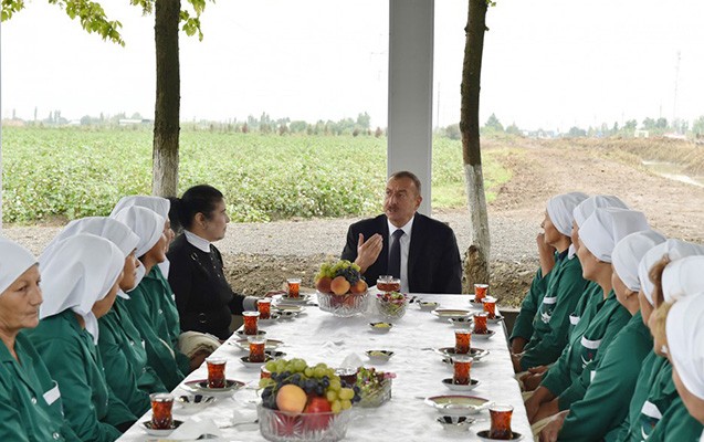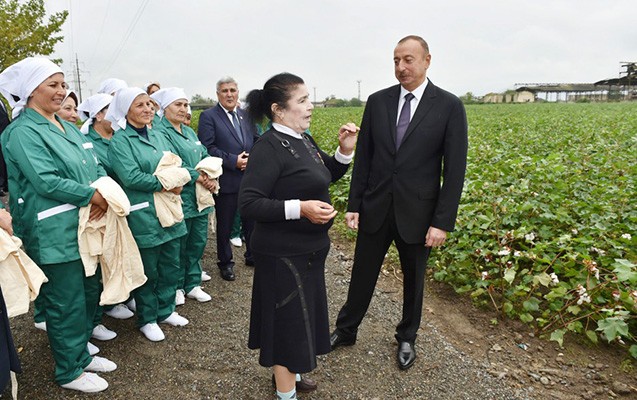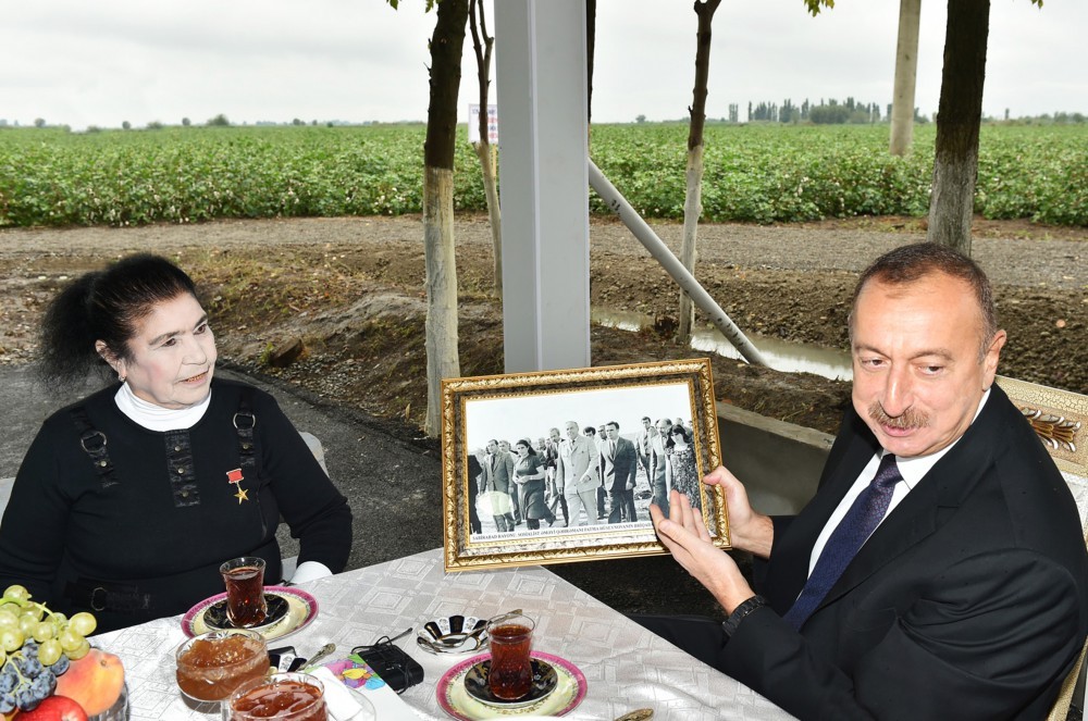 “Qafqazinfo” AzerTac-a istinadən xəbər verir ki, dövlət başçısı Sosialist Əməyi Qəhrəmanı Fatma Hüseynovanın pambıq əkini sahəsində olub.