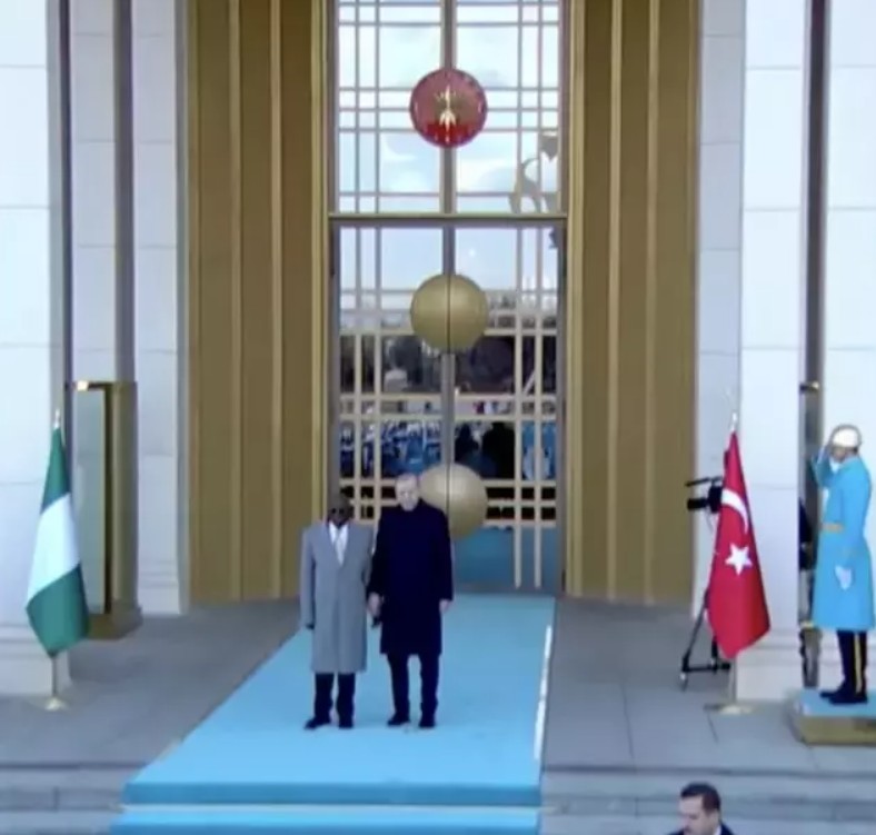 Türkiyədə rəsmi səfərdə olan Nigeriya Prezidenti Bola Əhməd Tinubu Prezident Rəcəb Tayyib Ərdoğan tərəfindən Beştəpədəki Prezident Kompleksində rəsmi qarşılama mərasimi zamanı tarazlığını itirərək yerə yıxılıb.
