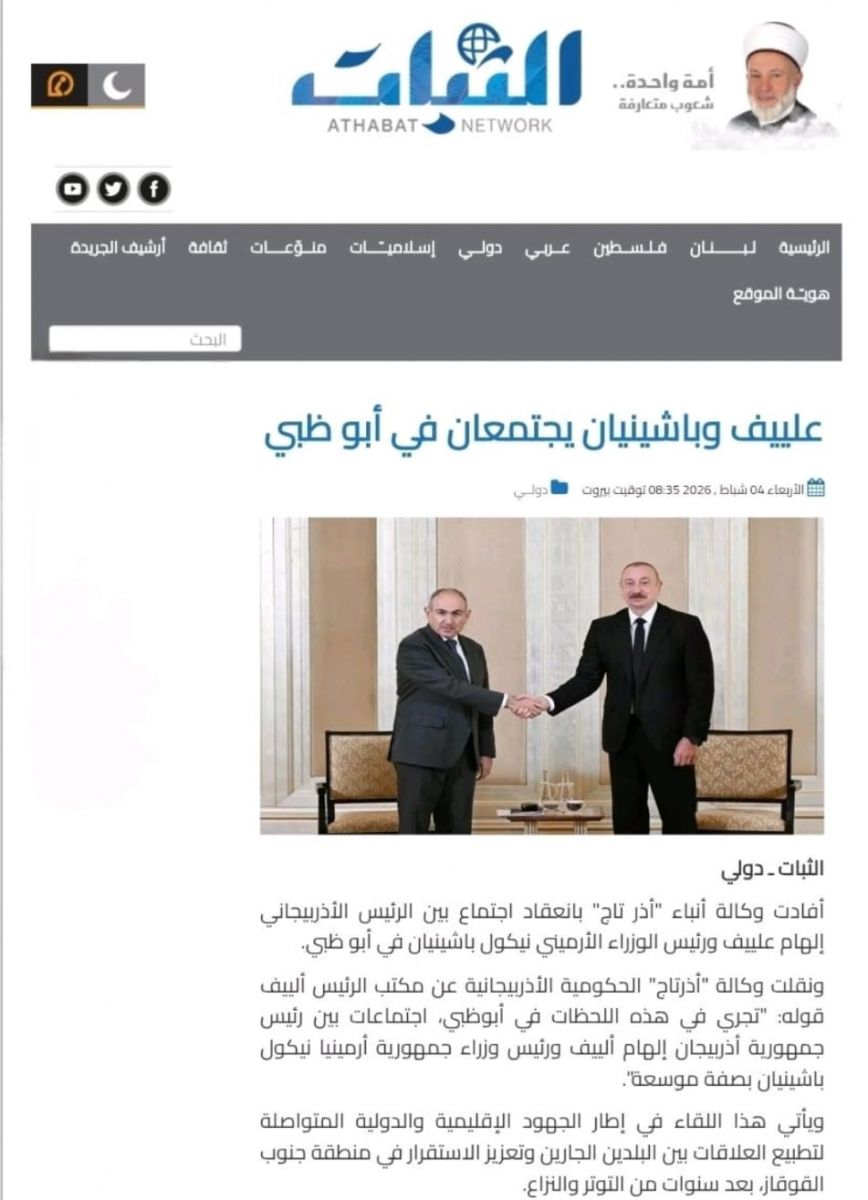 Mərakeşdə fəaliyyət göstərən “A5r5br” və ərəbdilli “Mvlana” portalı isə görüşün Cənubi Qafqazda regional sabitliyin möhkəmləndirilməsi və uzun illər davam edən gərginliyin aradan qaldırılması istiqamətində beynəlxalq səylərin tərkib hissəsi olduğunu qeyd edib. Ərəb mediası vurğulayır ki, Əbu-Dabidə baş tutan təmaslar Azərbaycan–Ermənistan dialoqunun davam etdirilməsinə və etimad quruculuğu tədbirlərinin genişləndirilməsinə xidmət edir.
