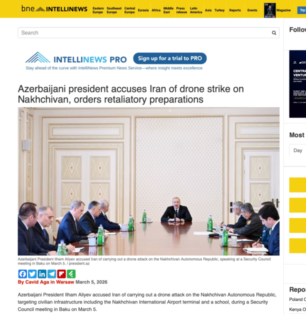 “Intellinews”, “OC Media”, “Times of Israel”, “Middle East Eye”, “News24”, “Daily Mail”, “The New Region” və digər media platformaları da Prezident İlham Əliyevin çıxışına istinad edərək Azərbaycanın təhlükəsizlik qüvvələrinin yüksək hazırlıq vəziyyətinə gətirildiyini yazıblar.