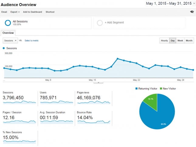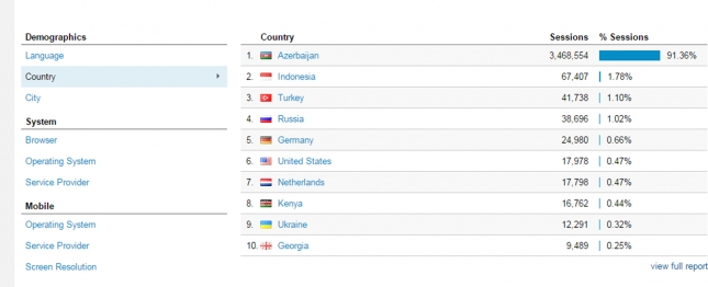 Rəqəmlər virtual dünyanın ən etibarlı hesablayıcısı sayılan Google Analytics-dən götürülüb. May ayı ərzində qafqazinfo.az səhifəsinə 3,796,450 ziyarətçi (sessiya) daxil olub. Ziyarətçilər 785,971 unikal İP-dən daxil olub. Ümumilikdə 46 milyon 169 min 076 səhifə baxışı olub. Hər bir ziyarətçı orta hesabla 11:59 dəqiqə saytda qalıb.