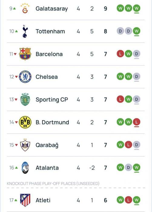 Xatırladaq ki, ÇL-in Liqa mərhələsində ilk 8 yeri tutan komandalar birbaşa 1/8 finala, 9-24-cü yeri tutanlar isə pley-off mərhələsinə vəsiqə qazanacaqlar. 25-36-cı yeri tutanlar avrokuboklarda çıxışlarını başa vuracaqlar.