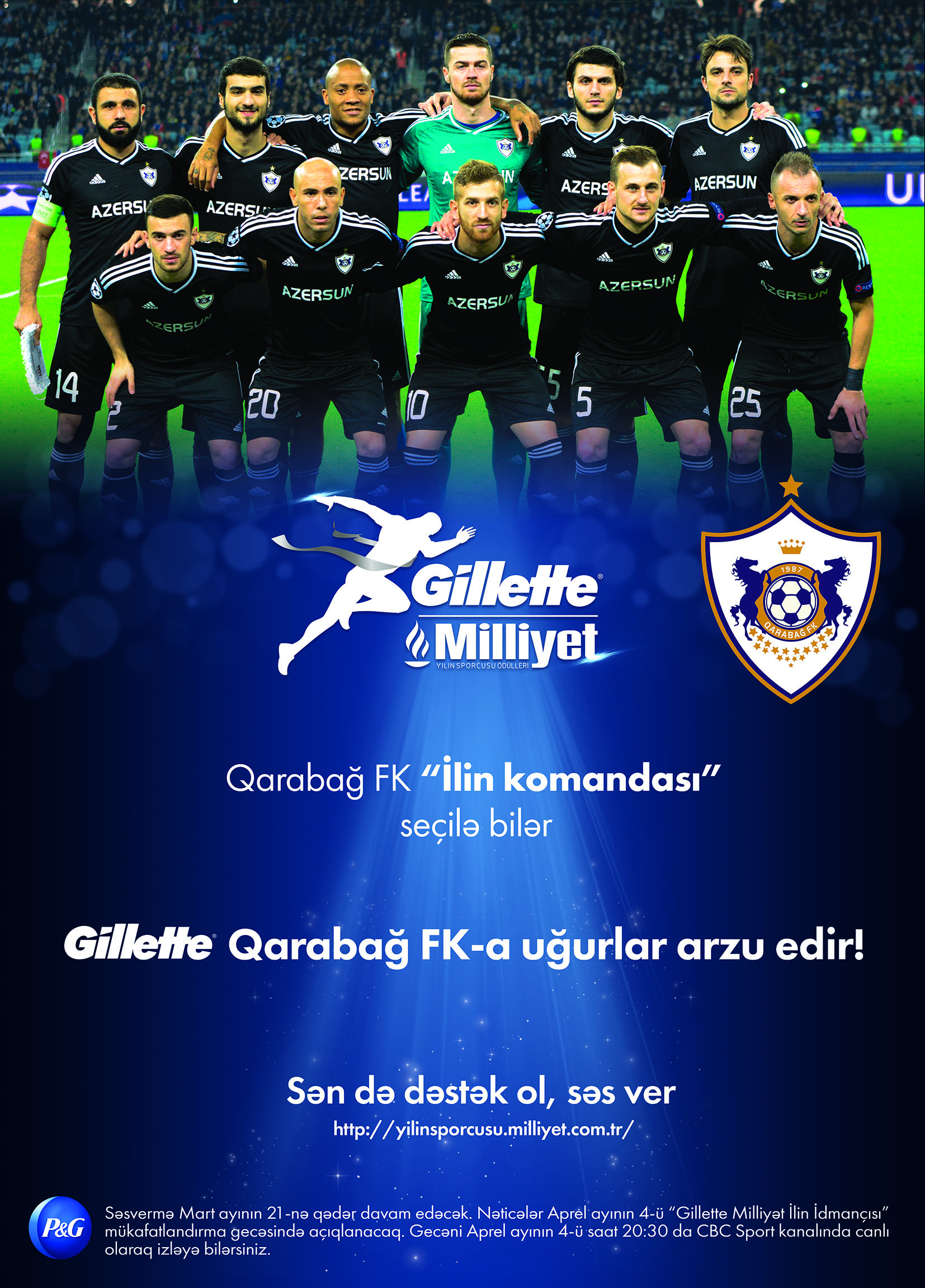 Ötən il Azərbaycan futbolunu UEFA Çempionlar Liqasına çıxaran “Qarabağ” Futbol Klubu ölkə çempionudur. Gillette Azərbaycan çempionuna Türkiyənin bu məşhur idman mükafatını qazanmaq uğrunda mübarizədə uğurlar arzulayır.