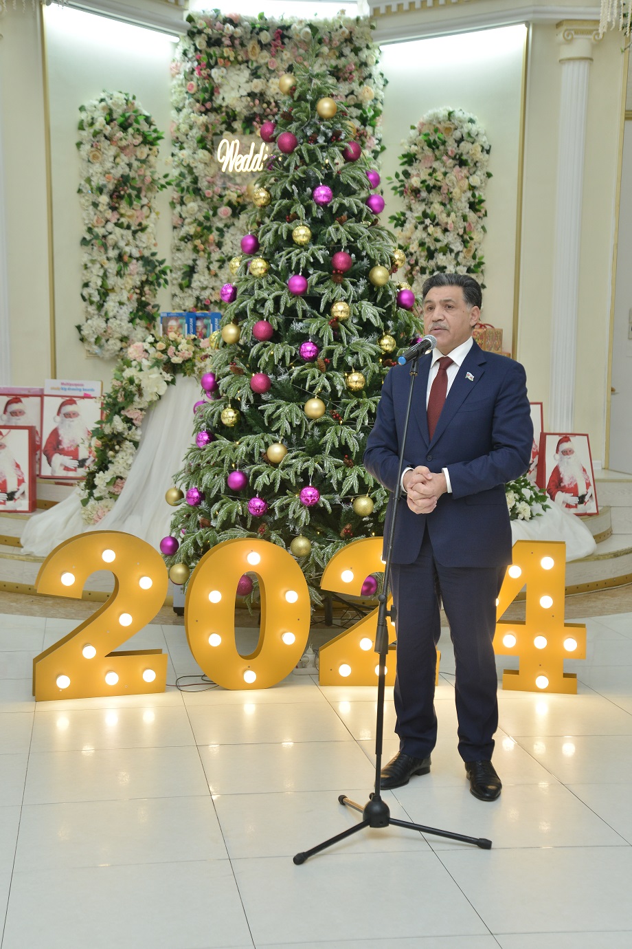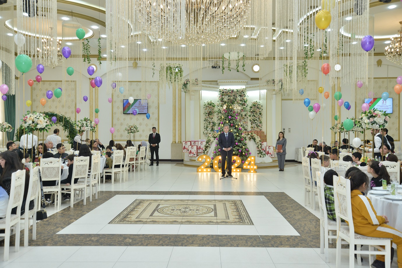 Tədbiri giriş sözü ilə açan Qaradağ Rayon İcra Hakimiyyətinin başçısı Süleyman Mikayılov şəhid və qazi ailələrini qarşıdan gələn 31 dekabr - Dünya Azərbaycanlılarının Həmrəyliyi günü və Yeni 2024-cü il münasibəti ilə təbrik edərək, ölkə başçısının uşaqlara olan diqqət və qayğısından söz açıb. 2023-cü ilin yaddaşımızda ən uğurlu il olduğunu, bir sutkalıq lokal antiterror əməliyyatı nəticəsində Azərbaycanın suverenliyi və ərazi bütövlüyünün tam təmin olunduğunu bildirib. Azərbaycan Respublikasının Prezidenti, Ali Baş Komandan cənab İlham Əliyevin 15 oktyabr tarixində Xankəndində və ətraf ərazilərdə Azərbaycan Dövlət Bayrağını yüksəltdiyini qeyd edib.