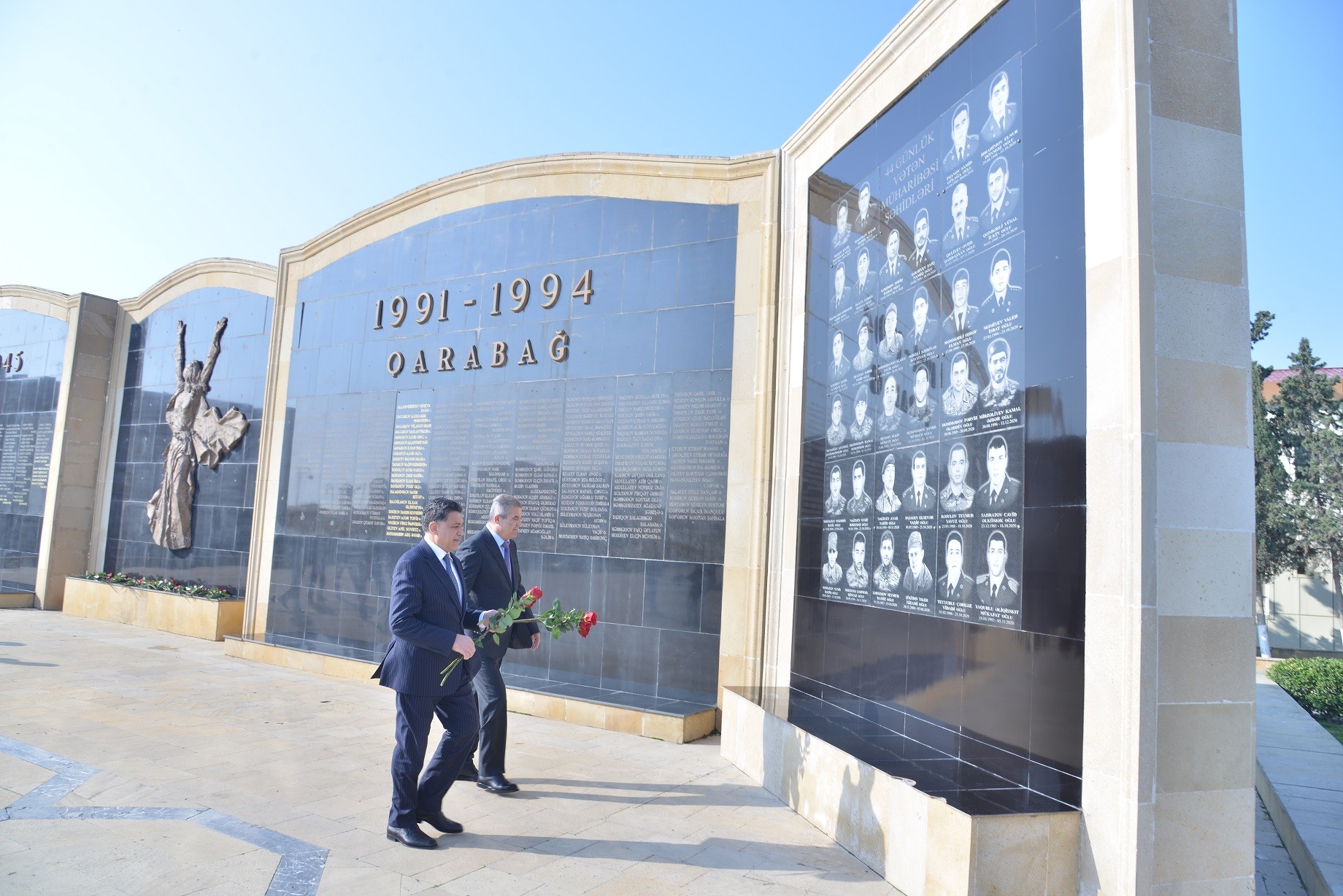 Daha sonra Qaradağ rayonu Lökbatan qəsəbəsindəki “Şəhidlər” abidə kompleksini ziyarət edərək şəhidlərin əziz xatirələrini anıblar. Onlar abidə önünə əklil və çələnglər qoyaraq şəhidlərin ruhuna ehtiramlarını bildiriblər.