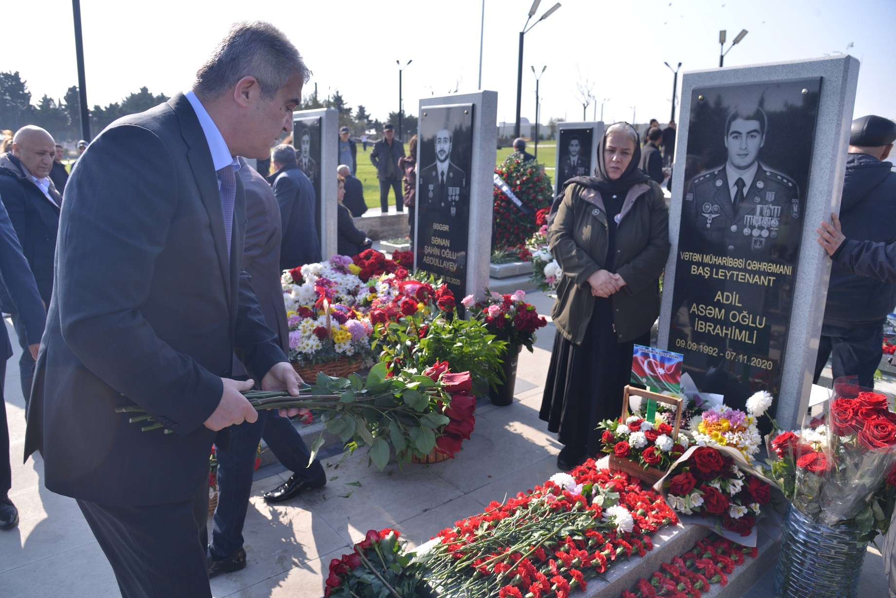 Ardınca II Fəxri xiyabanda dəfn edilmiş Vətən müharibəsinin şəhidləri - mayor Elsevər Vaqif oğlu Paşayevin, kapitan Türkay Nizami oğlu Hüseynlinin, baş leytenant Adil Asəm oğlu İbrahimlinin məzarları ziyarət edilib.