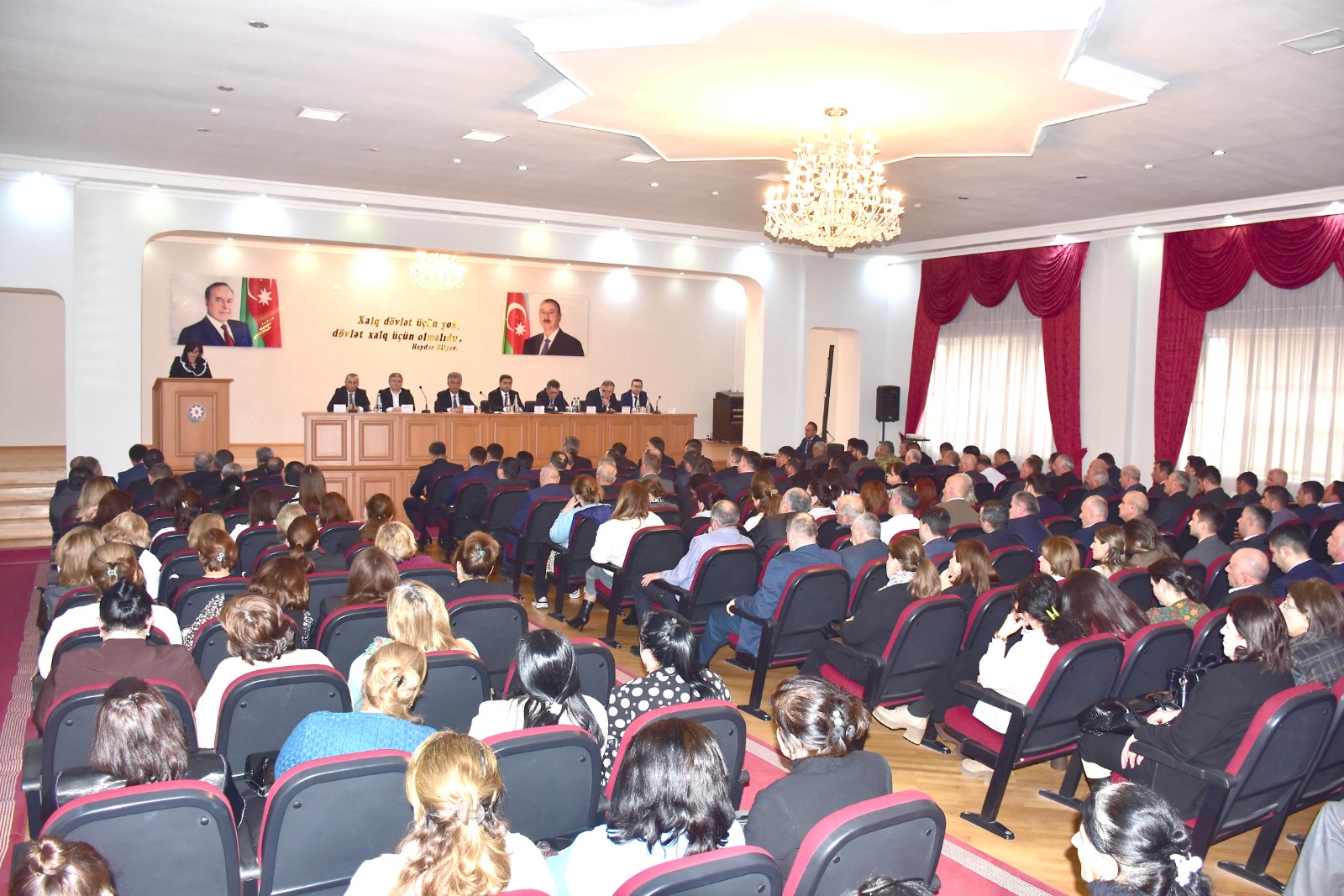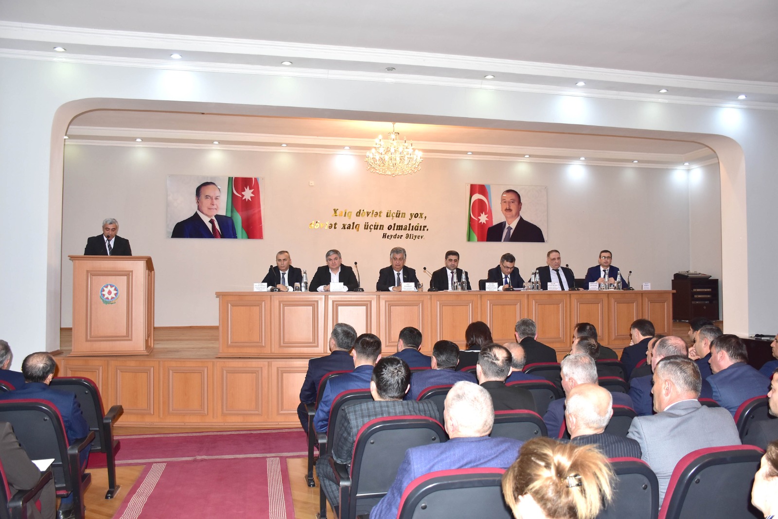 Hesabat tədbirini giriş nitqi ilə açan Rayon İcra Hakimiyyətinin başçısı Elvin Paşayev Azərbaycanın qazandığı tarixi qələbələr və dövlətimizin sarsılmaz qüdrətinin Ümummilli Lider Heydər Əliyevin uzaqgörən siyasətinin və Prezident İlham Əliyevin bu yolu böyük məharətlə davam etdirməsinin parlaq nəticəsi olduğunu diqqətə çatdırıb. Eyni zamanda Prezident İlham Əliyevin fəaliyyəti dövründə ölkəmizdə mövcud ictimai-siyasi sabitlik, Azərbaycanın sosial-iqtisadi inkişafına, insanların rifah halının yaxşılaşmasına, hüquq və azadlıqlarının daha dolğun təmin olunmasına, əhalinin təhlükəsizliyinə, beynəlxalq aləmdə qazanılan uğurlara əsas yaradıb.
