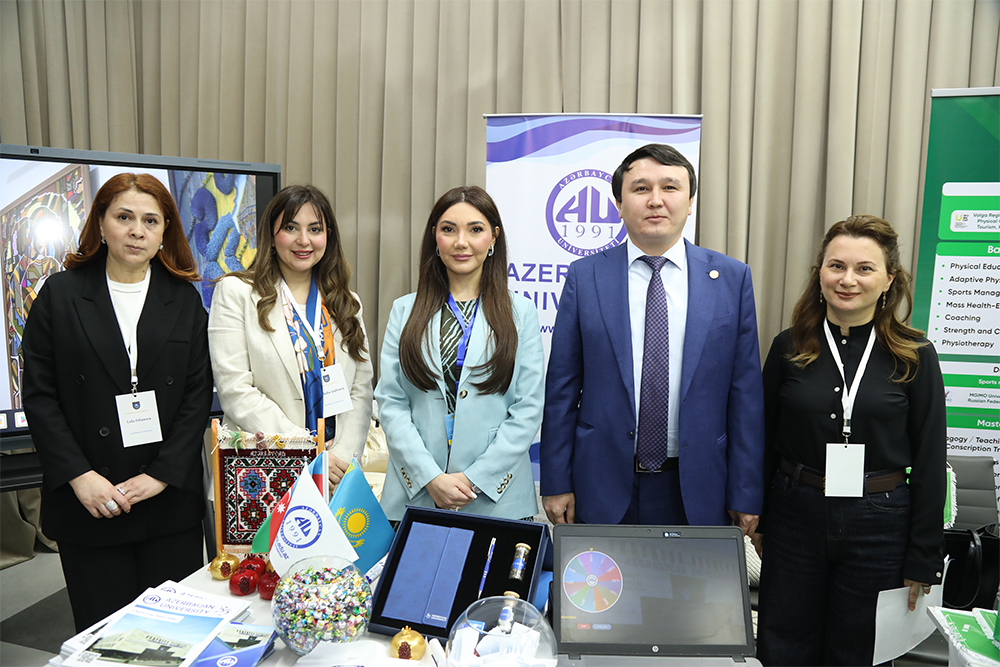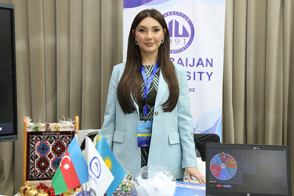 Qaliblərə milli ornamentli hədiyyə və suvenirlər də təqdim olunur. Universitetin stendini Qazaxıstanda fəaliyyət göstərən müxtəlif profilli universitet və təhsil müəssisələrinin rəsmiləri də ziyarət edir. Onlara Azərbaycan Universiteti haqqında məlumat verilir, yeni əməkdaşlıqların təməli atılır. Sərgi davam edir və bu gün saat 17:00-da yekunlaşacaq.