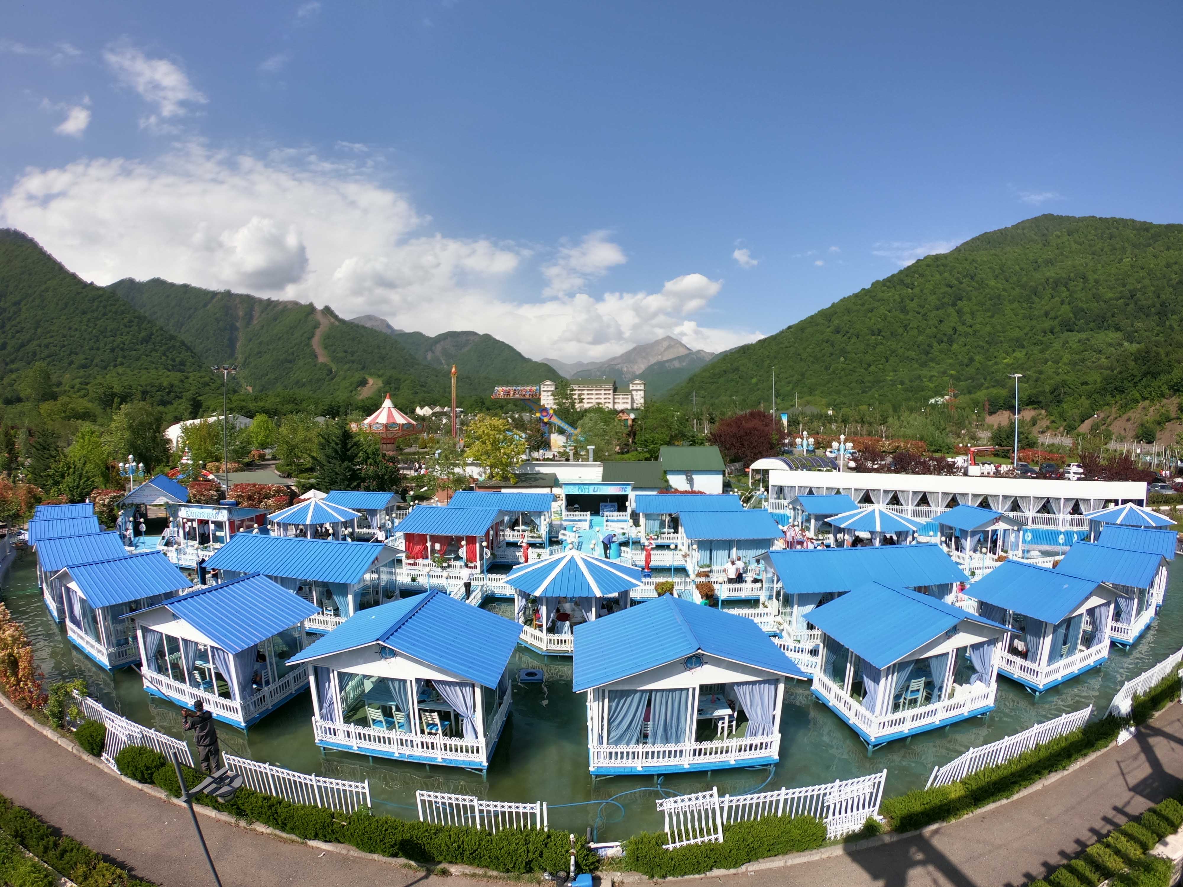 Parkın ümumi sahəsi 16 hektardır – burada həm uşaqlar, həm də böyüklər üçün çoxlu sayda müxtəlif karusellər, 800 м2 sahəyə malik su attraksionları ilə təchiz olunmuş hovuz, rahat dayanacaq, dağlara açılan füsunkar mənzərə, ətirli güllərlə dolu gözəl bağ, bir-birindən ləzzətli yeməkləri olan restoran və kafelər xidmət göstərir.