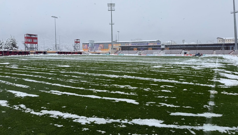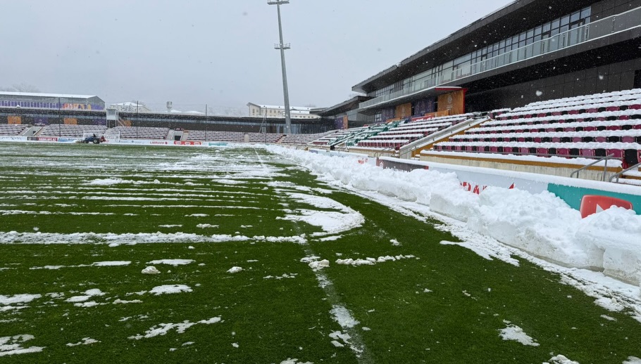 Qəbələ stadionunu qar örtüb.