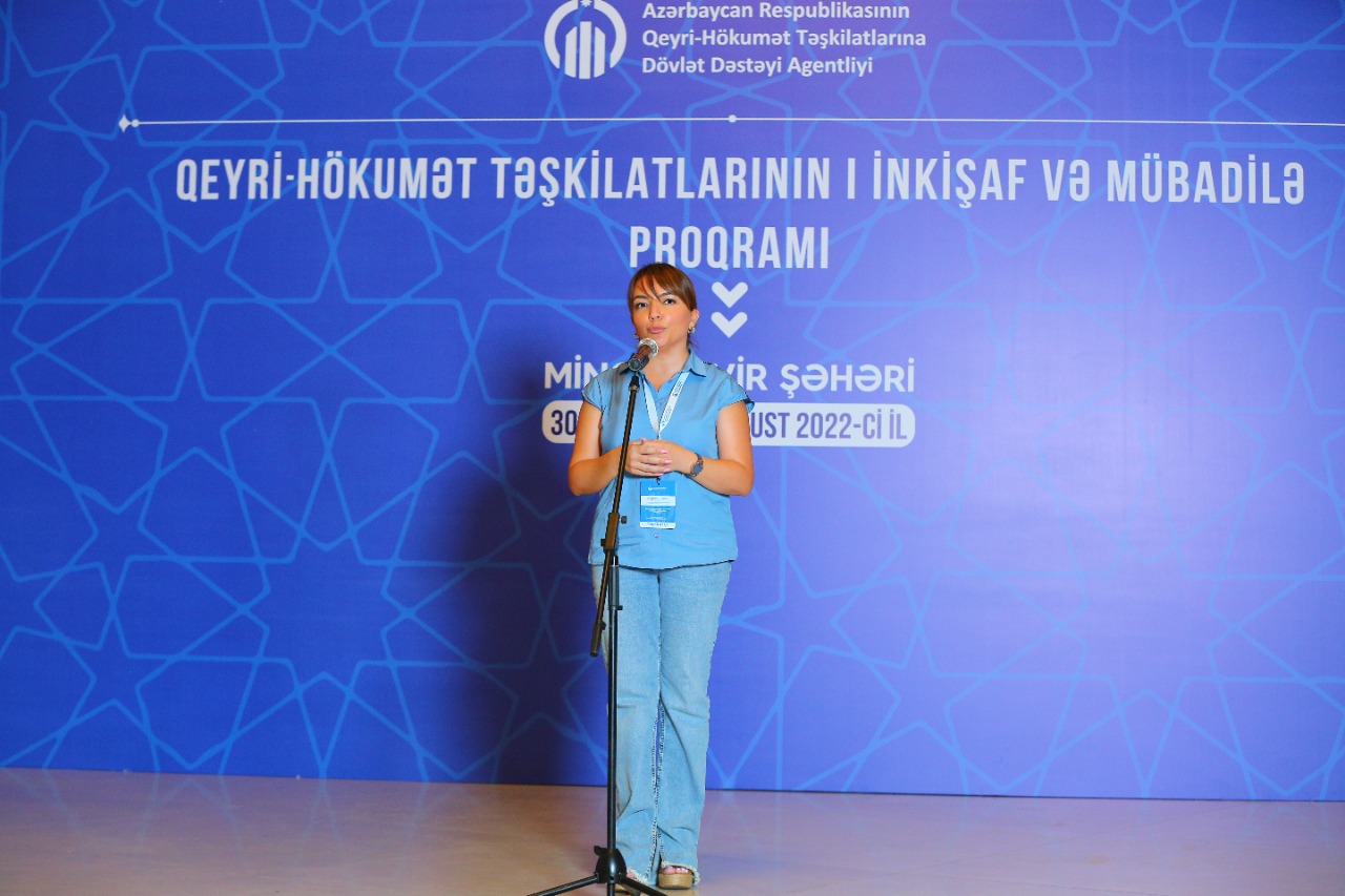 Daha sonra çıxış edən Qeyri-Hökumət Təşkilatlarına Dövlət Dəstəyi Agentliyinin icraçı direktoru Aygün Əliyeva qeyd edib ki, “QHT-lərin 1-ci İnkişaf və Mübadilə proqramı” uğurla yekunlaşıb. A.Əliyeva proqramı uğurla bitirən bütün iştirakçıları təbrik edib və bu mövzuda hazırlanan təlimlərin gələcəkdə regionların ehtiyaclarını nəzərə alınmaqla davam edəcəyini bildirib.