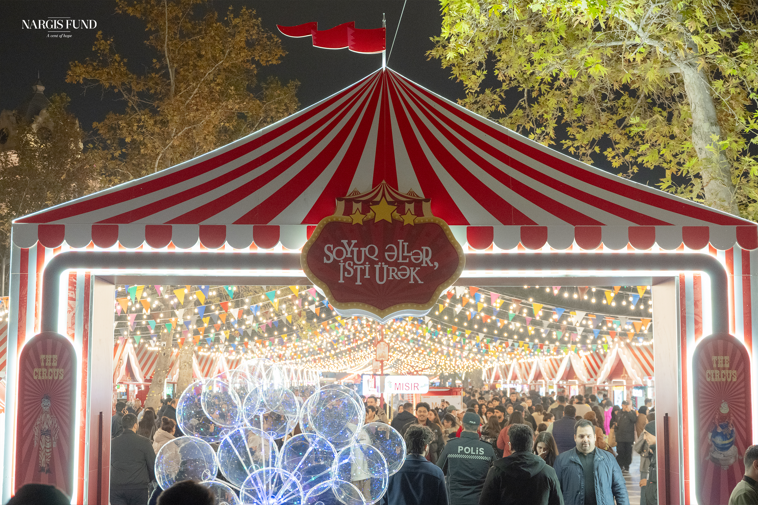 Bu il “Soyuq əllər, isti ürək” xeyriyyə yarmarkası ilk dəfə sirk tematikası ilə təqdim olunur və Fəvvarələr Meydanını rəngarəng personajların, canlı şouların, musiqinin və özünəməxsus dekorların harmoniya təşkil etdiyi unikal bir məkana çevirir.