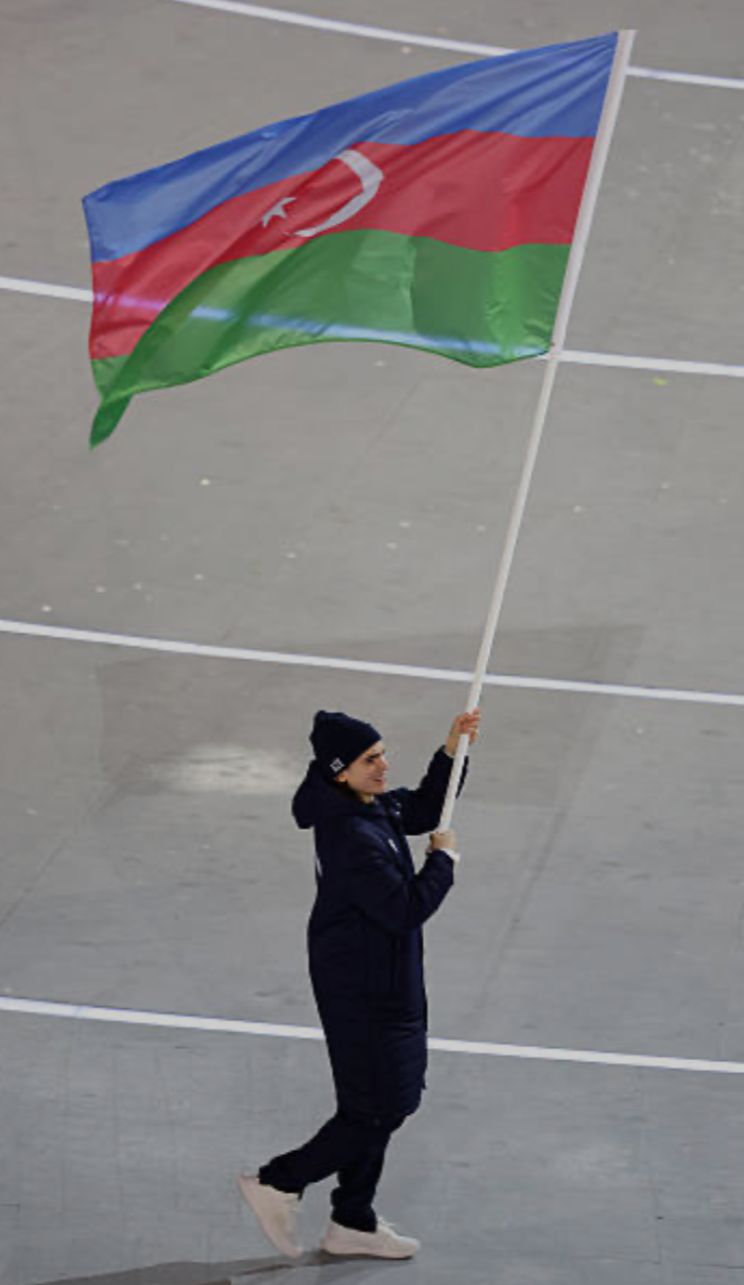 Azərbaycan millisinin bayraqdarları fiqurlu konkisürən Vladimir Litvintsev və dağ xizəyi üzrə idmançı Anastasiya Papatoma olub.