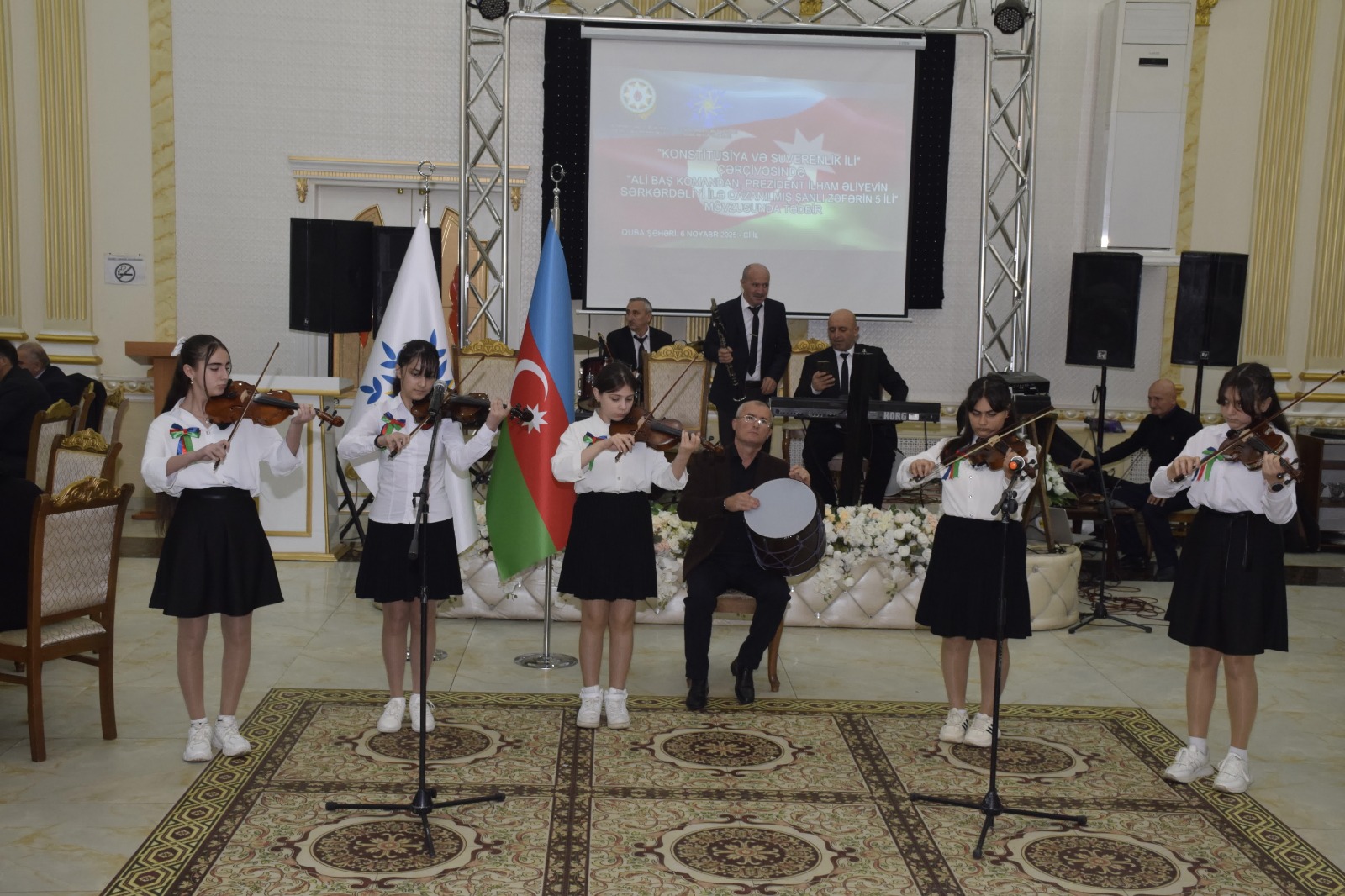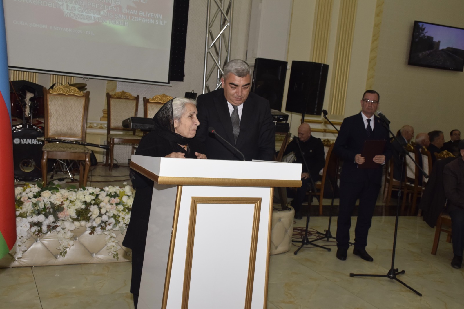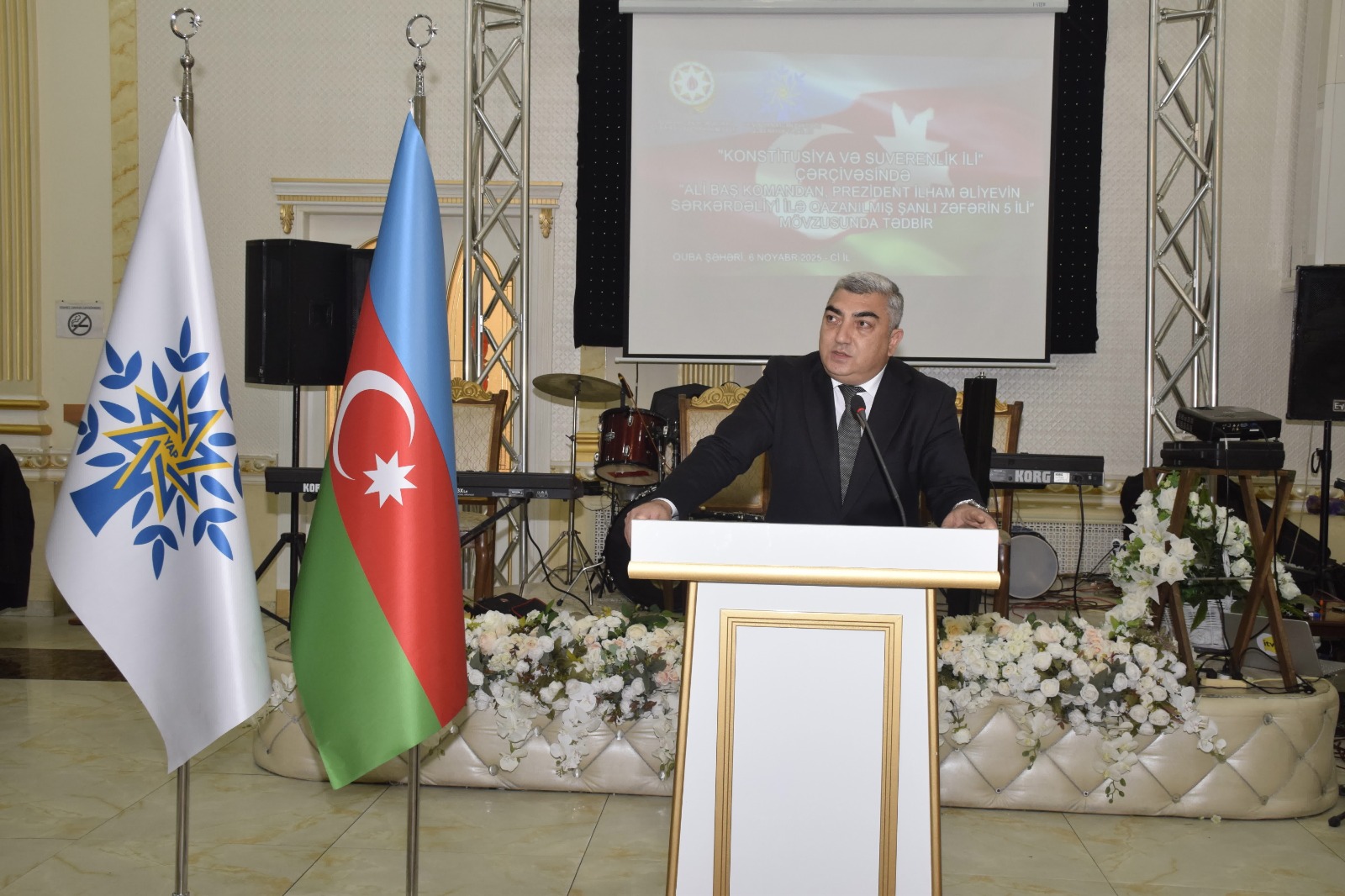 Quba şəhərində “Nərgiz Plaza” şadlıq sarayında davam edən tədbirdə çıxışlar zamanı bildirilib ki, xalqımızın qüdrətinin və milli qürurumuzun təntənəsinə çevrilən misilsiz qələbədən 5 il ötür. Azərbaycan xalqının Ümummilli Lideri Heydər Əliyev tərəfindən əsası qoyulmuş ordu quruculuğu siyasətinin tamamilə doğru olduğunu 44 günlük Vətən müharibəsindəki qələbəmiz bir daha sübut edib.