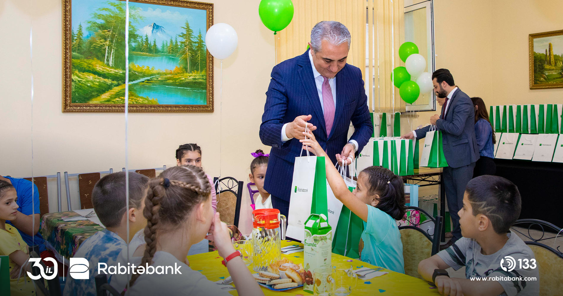 1 İyun Uşaqların Beynəlxalq Müdafiəsi Günü münasibətilə Rabitəbank rəhbərliyi və əməkdaşları Ailə, Qadın və Uşaq Problemləri üzrə Dövlət Komitəsi-nin nümayəndəsi ilə birlikdə Nizami rayonu Rüstəm Rüstəmov küçəsi 66A ünvanında yerləşən 1 nömrəli Uşaq Evi-ni ziyarət edib. Sözügedən uşaq evində 70-dən çox azyaşlı və məktəbli uşaqlar qalır. Valideyin himayəsindən kənarda qalmış bu uşaqlar gələn qonaqları çox böyük maraqla qarşıladılar. Rabitəbank-ın əməkdaşları tərəfindən təqdim edilən məktəb ləvazimatları və film izləmək üçün xüsusi proyektor cihazı uşaqların sevinc və həyəcanına səbəb oldu. Daha sonra uşaqlar qonaqlar üçün hazırladığı səhnəcikləri, rəqsləri oynayıb, şeir və mahnı oxudular.