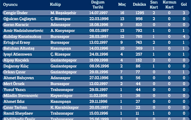 Ən çox forma şansı qazanan gənc oyunçu “Başakşəhər”in heyətində çıxış edən Cengiz Ündərdi. Gənclərin arasında ən çox qol vuran oyunçu isə "Bursaspor"un forvardı Kubilay Qanadsızquşdu.