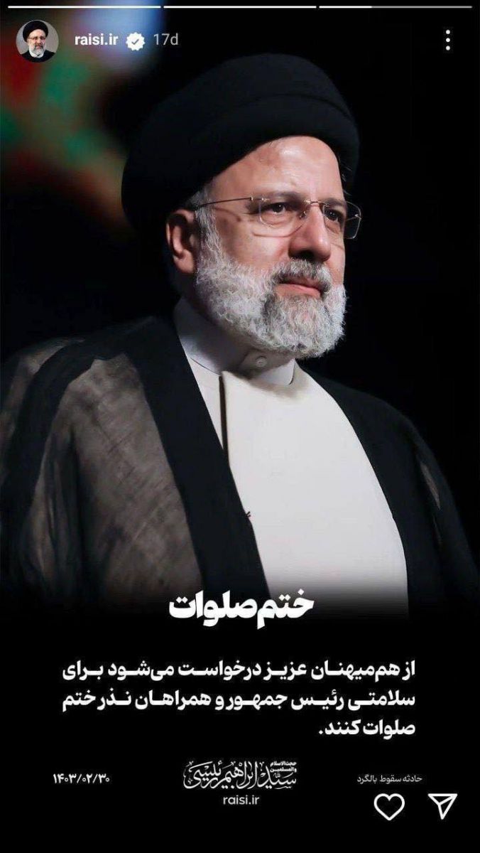 “Qafqazinfo” xəbər verir ki, İran Prezidenti İbrahim Rəisinin rəsmi instaqram hesabında “Mənim üçün dua edin” sözləri ilə paylaşım edilib.