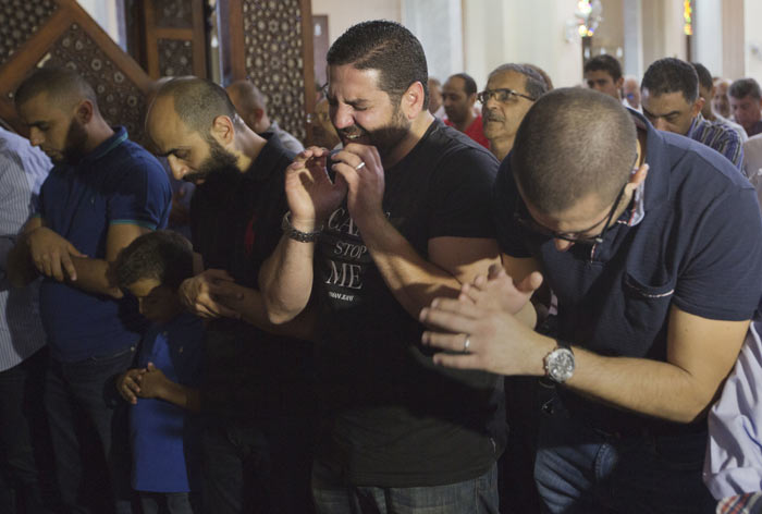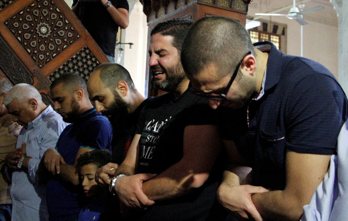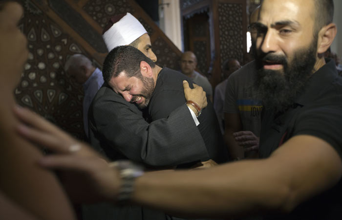 Qəzada 4 yaxınını itirən misirli rejissor Osman Əbu Laban da namaz mərasiminə qatılıb. O, imamı qucaqlayaraq dayanmadan ağlayıb.