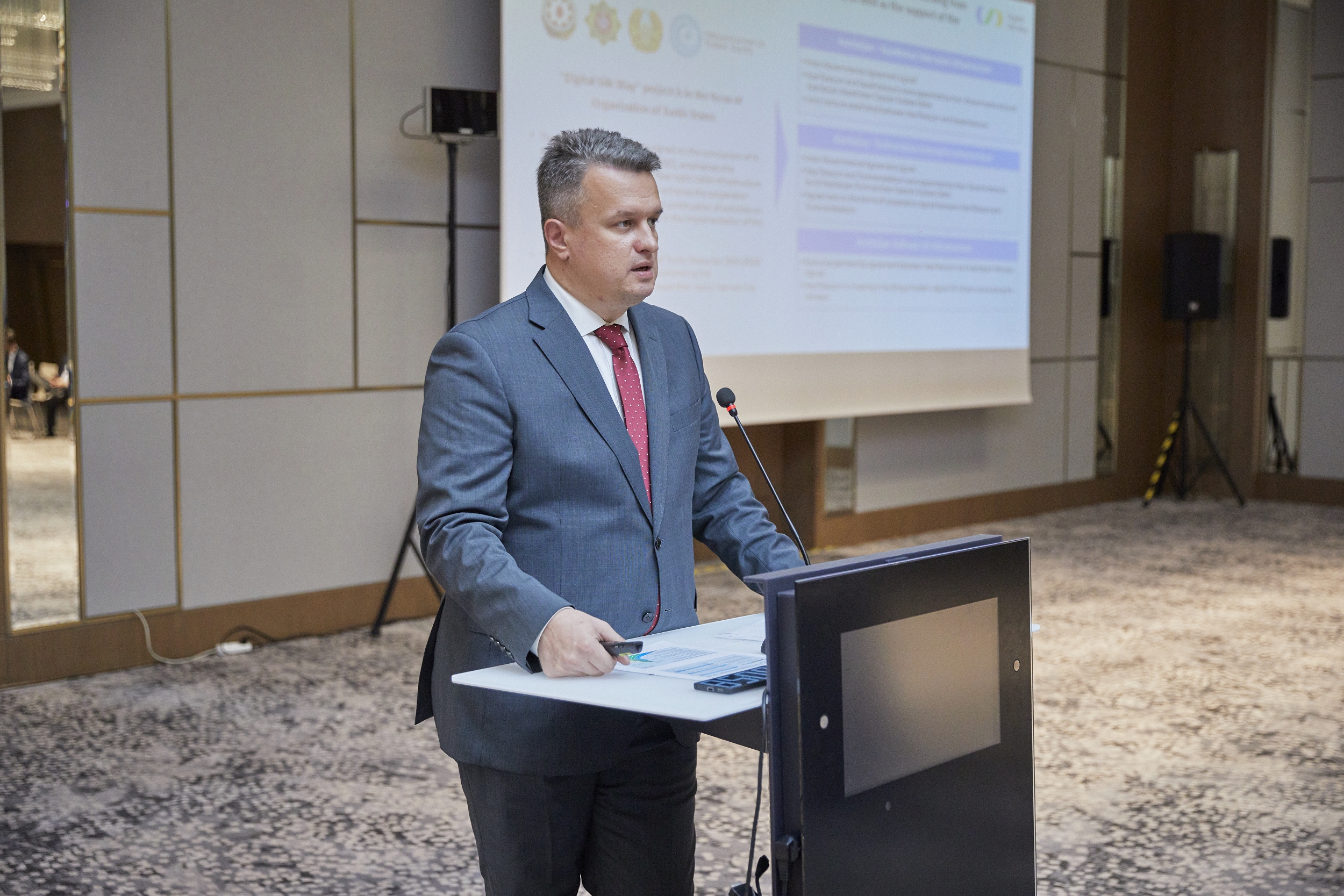 Tədbirdə çıxış edən AzerTelecom şirkətinin Əməliyyatlar üzrə baş direktoru Sergey Nazarenko ölkəmiz və region üçün prioritet layihələrdən biri olan “Rəqəmsal İpək Yolu” layihəsinin strateji əhəmiyyəti, əsas komponentləri barədə tədbir iştirakçılarına məlumat verib. “Rəqəmsal İpək Yolu” layihəsi çərçivəsində ölkə daxilidə, eləcə də Azərbaycanla Orta Asiya ölkələri arasında Xəzərin dibi ilə qurulacaq rəqəmsal infrastrukturun Avropa ilə Asiya arasında yeni rəqəmsal telekommunikasiya dəhlizini formalaşdıracağını qeyd edib.