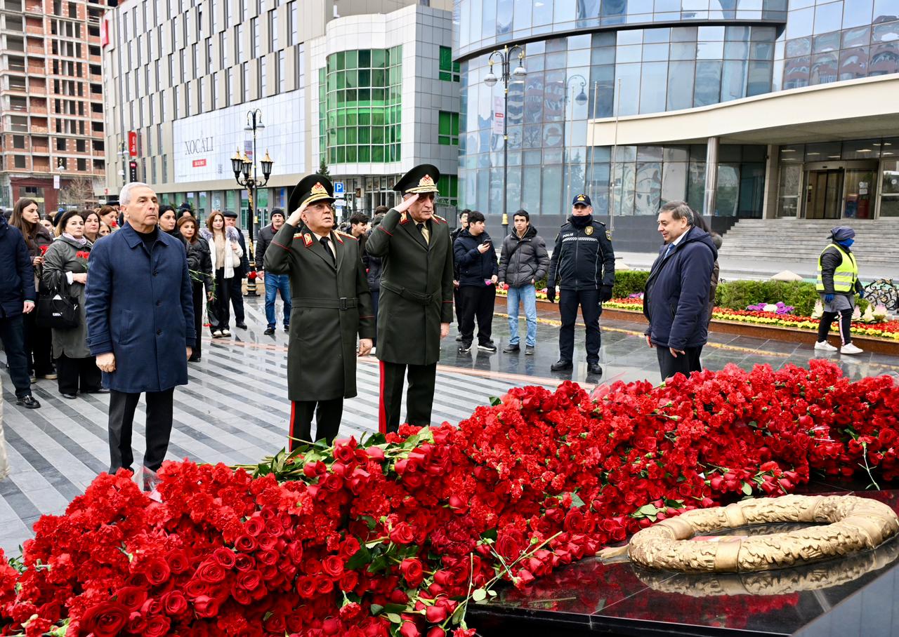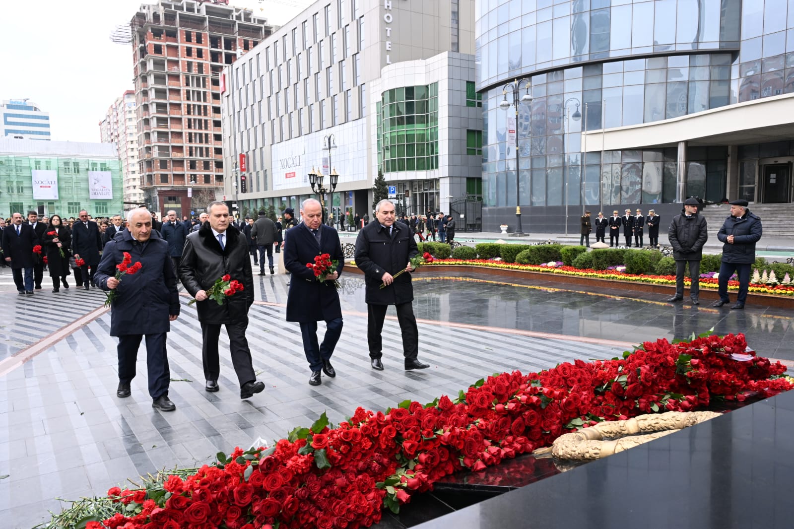 “Qafqazinfo” xəbər verir ki, Azərbaycanın Baş naziri Əli Əsədov, Milli Məclisin sədri Sahibə Qafarova, Prezident Administrasiyasının rəhbəri Samir Nuriyev, Dövlət Təhlükəsizliyi Xidmətinin rəisi general-polkovnik Əli Nağıyev, müdafiə naziri general-polkovnik Zakir Həsənov, xarici işlər naziri Ceyhun Bayramov, fövqəladə hallar naziri general-polkovnik Kəmaləddin Heydərov, Azərbaycan Prezidentinin köməkçisi - Prezident Administrasiyasının Xarici siyasət məsələləri şöbəsinin müdiri Hikmət Hacıyev, Baş prokuror Kamran Əliyev və digər rəsmilər faciə qurbanlarının xatirəsini ehtiramla yad ediblər.