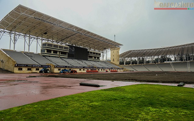 Bu gün media nümayəndələri stadionda olub. Gənclər və İdman Nazirliyinin mətbuat xidmətinin rəhbəri Səmayə Məmmədova jurnalistləri aparılan işlərlə bağlı məlumatlandırıb. O, arena üçün ölkəmizin müxtəlif rayonlarından tonlarla torpaq gətirildiyini bildirib: “Hazırda torpaq qatının dəyişdirilməsi işləri davam etdirilir. Ölkəmizin müxtəlif rayonlarından meydança üçün təxminən 15 min kub/metr (1200 ton) torpaq gətirilib. Növbəti 1-2 həftə ərzində xüsusi texnika ilə torpaq qatının yayılması, düzləşdirilməsi və müvafiq qaydalara əsasən cərgələnməsi işlərinə başlanılacaq. Martın 22-dən sonra isə torpağa ot toxumunun səpilməsi işlərinə start veriləcək. Ot örtüyünün əmələ gəlməsi 40-45 gün vaxt aparacaq. Bununla yanaşı arenada oyunların keçirilməsi üçün bir neçə həftə lazım olacaq. Bu səbəbdən də may ayının birinci yarısında Bakıda keçiriləcək 17 yaşlı futbolçular arasında Avropa çempionatının oyunları bu arenada baş tutmayacaq. Stadionda matçların keçirilməsi isə iyul ayının əvvəlindən mümkün olacaq ki, bu da Avropa Liqası matçlarına təsadüf edəcək”.