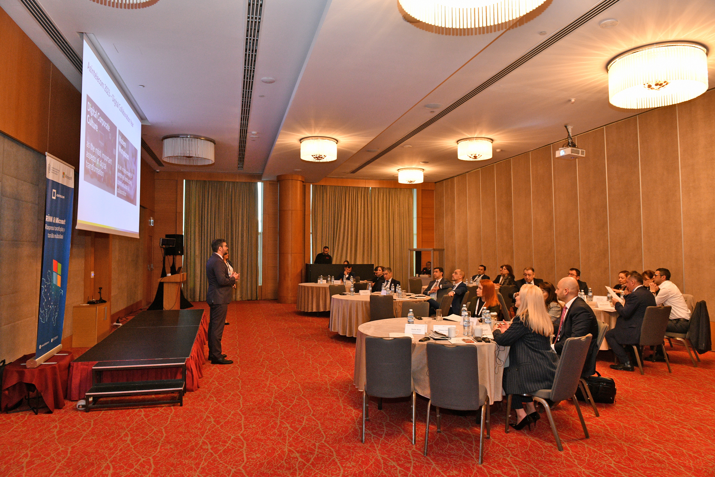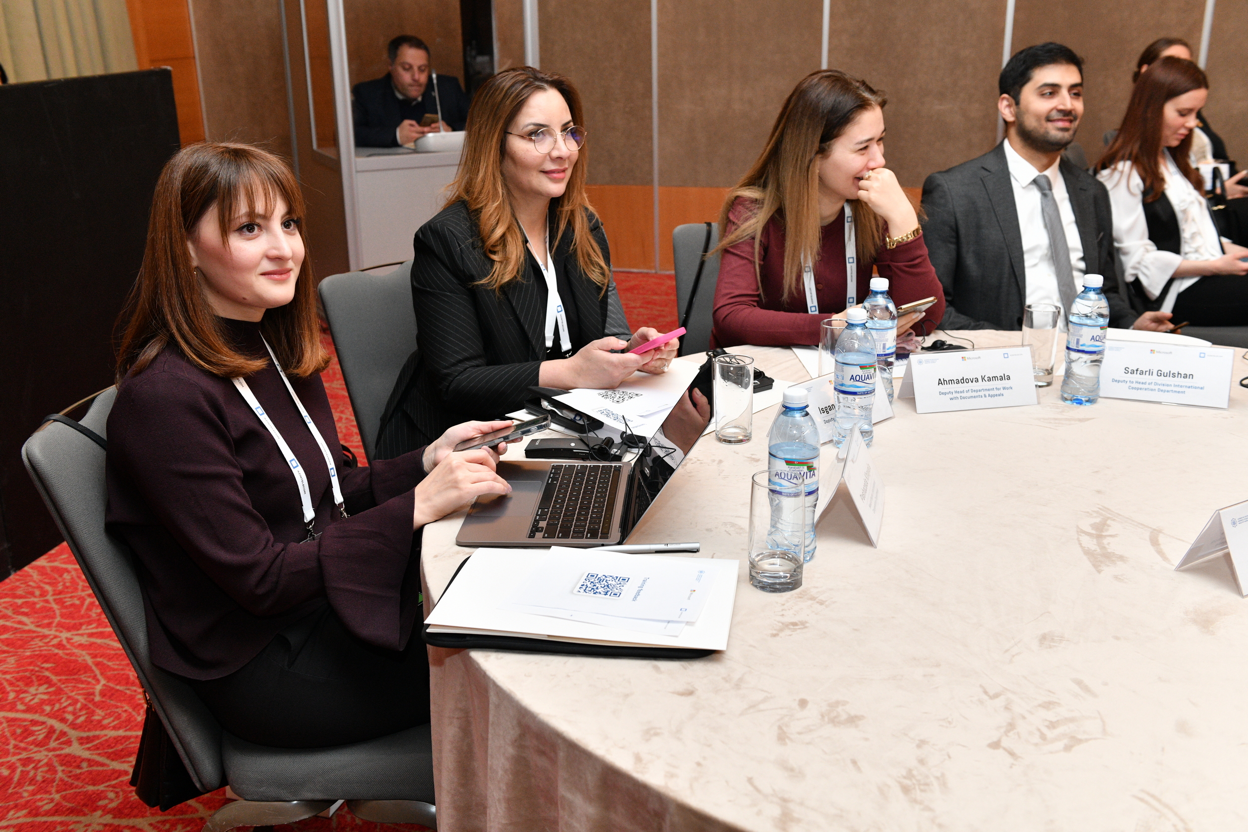 “Microsoft”un ölkəmizdə səfərdə olan nümayəndələri Anna Kaştanova və Tatyana İostman çıxış edərək mövcud proseslərin rəqəmsallaşdırılması istiqamətində şirkətin təklif etdiyi məhsulların təqdimatını keçiriblər. Beynəlxalq korporasiyanın rəsmiləri məhsullar və hər bir xidmət üzrə iş prinsipləri haqda ətraflı məlumat veriblər.