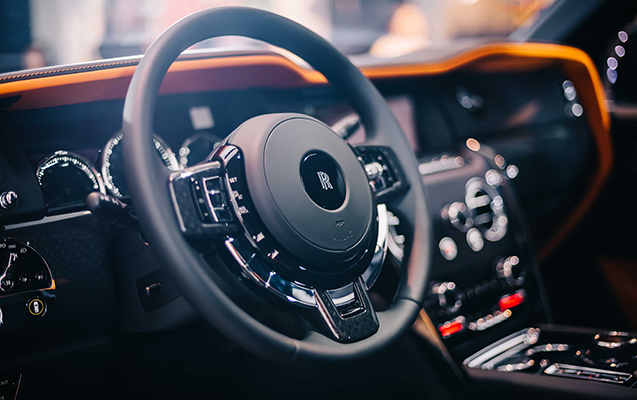 Rolls-Royce Cullinan Black Badge modelinin interyerindəki yenilik dekorativ panellərin arxitekturadakı müasir trendlərdən ilham alınaraq yaradılmış geometrik naxışı və üçölçülü effekti olan karbonla tərtib edilməsidir. Hər bir elementi 6 lak qatı ilə örtüb 72 saat ərzində qurumasını gözləyirlər, sonra isə əllə güzgü parlaqlığına qədər cilalayırlar. Krossoverin tavanı qara dəri ilə örtülür və ulduz yağışı effektini təmin edən 1344 fiber optik işıq diodlarından ibarət “gecə səması” ilə bəzədilir. İlk dəfə olaraq, Cullinan modelinin salonunu “Forge Yellow” rəngli dəri ilə tərtib edilibdir. Və sonunda - avtomobilin arxa oturacağında naxışlanmış sonsuzluq işarəsidir. Rəmz eyni zamanda Rolls-Royce müştərilərinə avtomobilinin sonsuz imkanlarını xatırladaraq ön paneli, kandarı və saat üzərini bəzəyir.