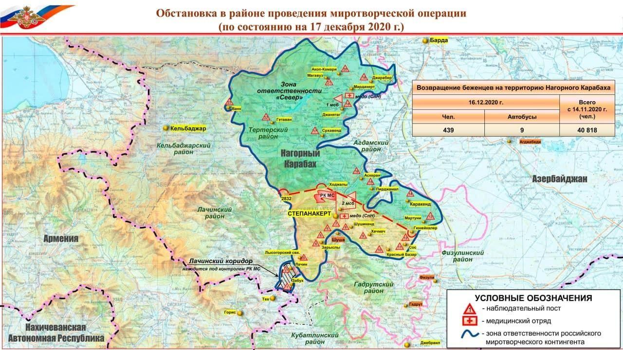 Rusiya Müdafiə Nazirliyi Qarabağda sülhməramlılar yerləşdirilməsinin yeni xəritəsini yayımlayıb.