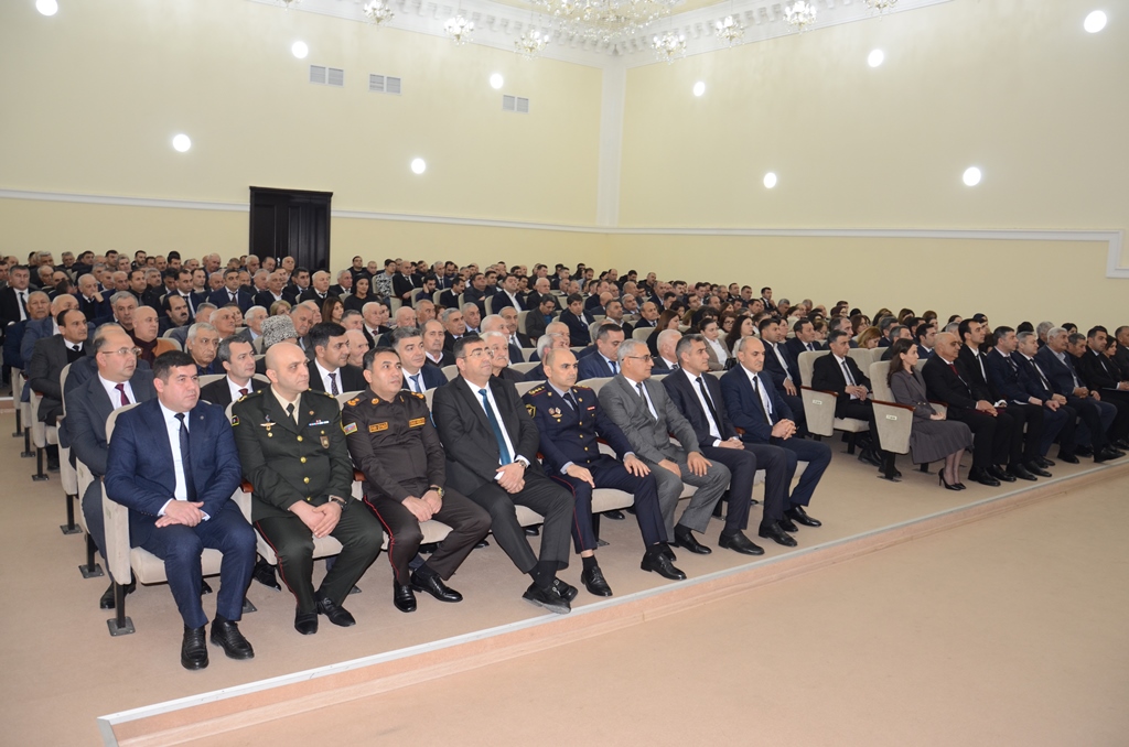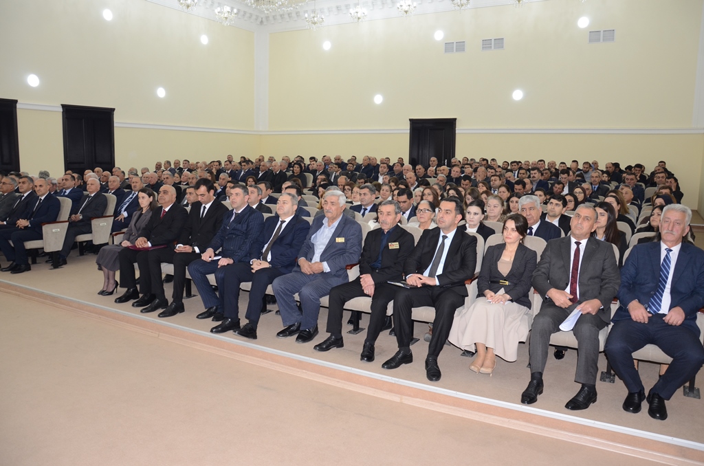 Prezident Administrasiyasının Ərazi-təşkilat məsələləri şöbəsinin 8-ci ərazi sektorunun müdiri Məmmədiyə Məmmədov tədbirdə çıxış edərək Azərbaycan Respublikasının Prezidenti cənab İlham Əliyevin 2025-ci il ərzində həyata keçirdiyi dövlət siyasətinin əsas istiqamətləri, aparılan strateji və struktur islahatlar, ölkənin sosial-iqtisadi inkişafı üçün müəyyən edilmiş prioritet hədəflər, vətəndaşların rifahının yüksəldilməsi və dayanıqlı inkişafın təmin olunması istiqamətində görülmüş tədbirlər, habelə 2026-cı ilin “Şəhərsalma və Memarlıq İli” elan olunmasının əhəmiyyəti, bu çərçivədə şəhər və kənd yaşayış məntəqələrinin planlı şəkildə yenidən qurulması, müasir memarlıq prinsiplərinin tətbiqi və Böyük Qayıdış Proqramı əsasında işğaldan azad edilmiş ərazilərdə həyata keçirilən genişmiqyaslı bərpa və quruculuq işləri barədə geniş və ətraflı məlumat vermişdir.