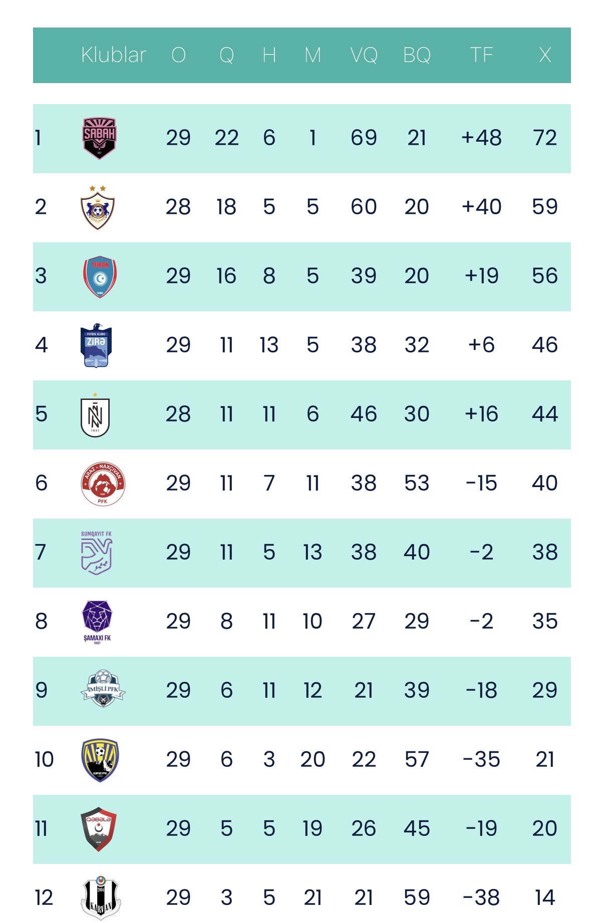 Misli Premyer Liqasında XXIX turun sonuncu matçı “Sabah”ın üstünlüyü ilə başa çatıb.