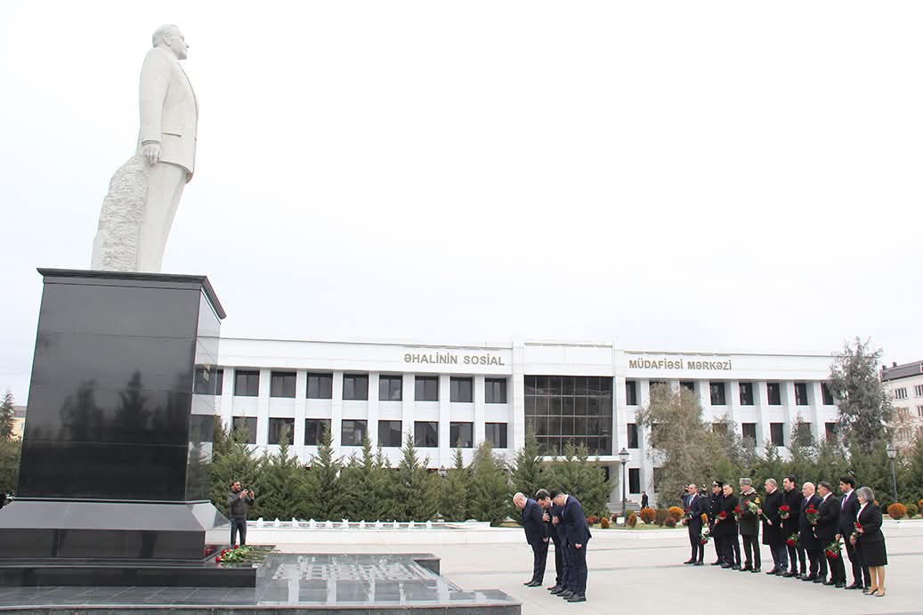 Tədbir iştirakçıları ilk öncə Sabirabad şəhərinin mərkəzində ucaldılmış Ulu Öndər Heydər Əliyevin abidəsini ziyarət edib, önünə gül dəstələri düzüblər.