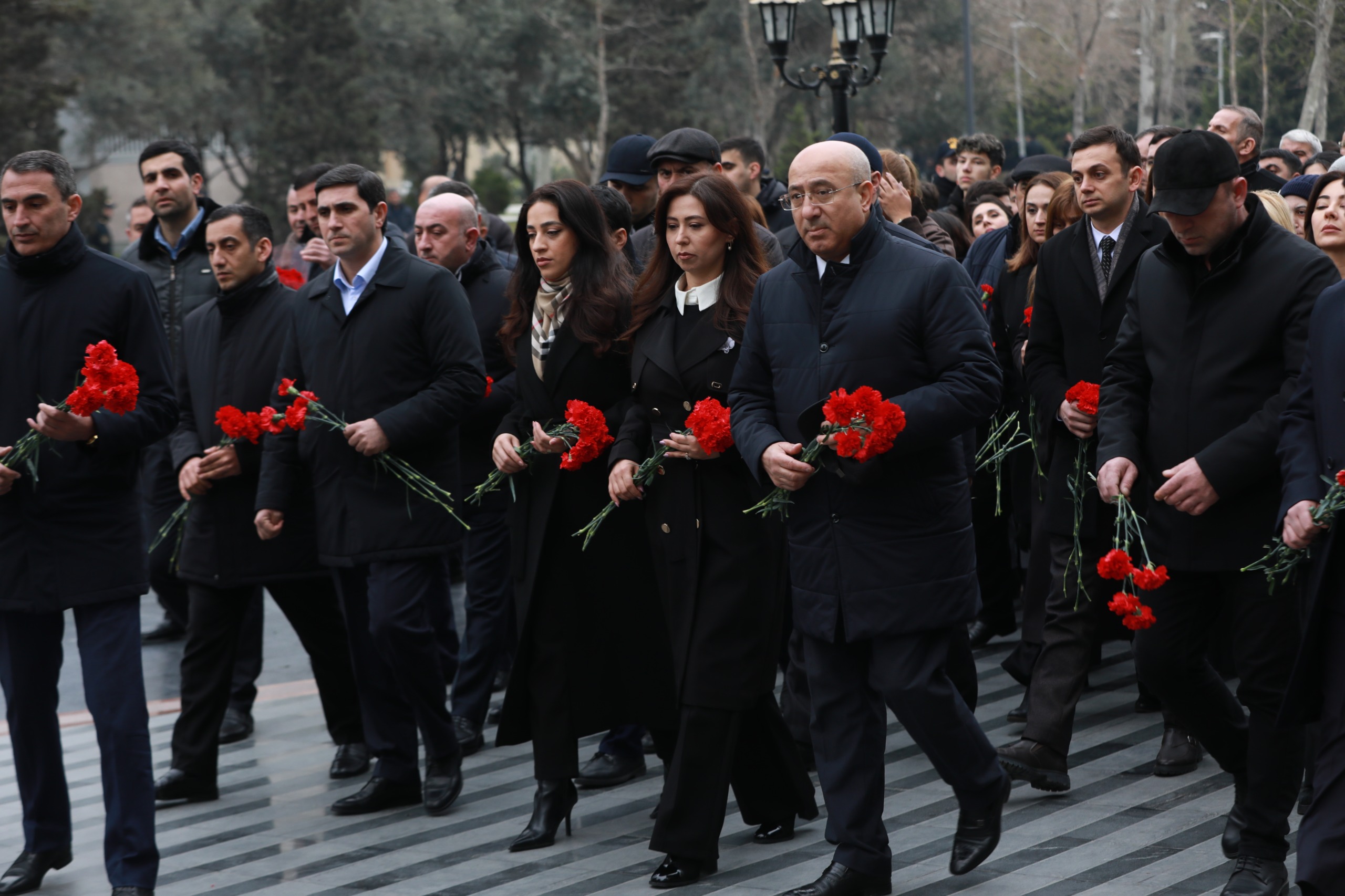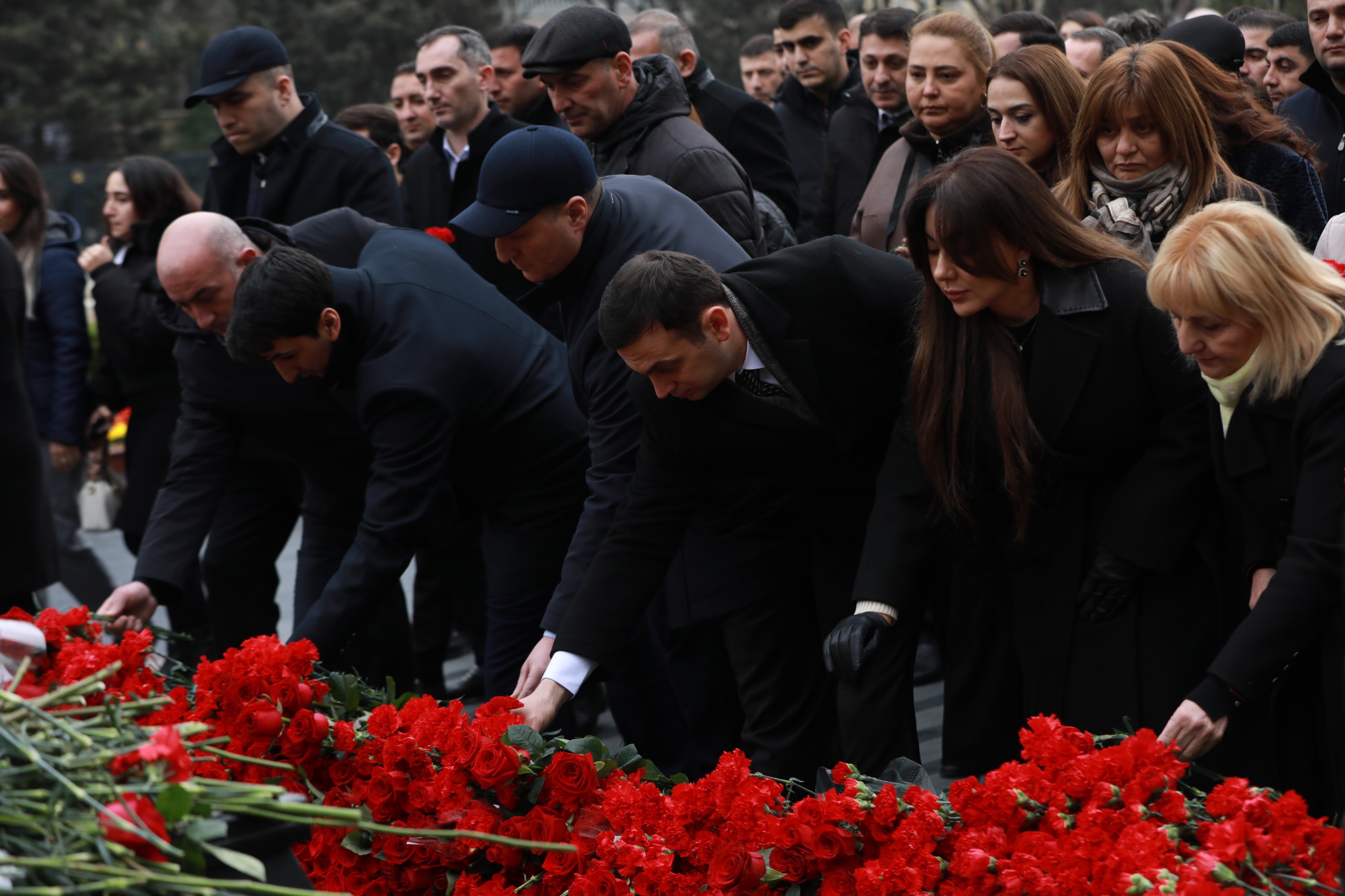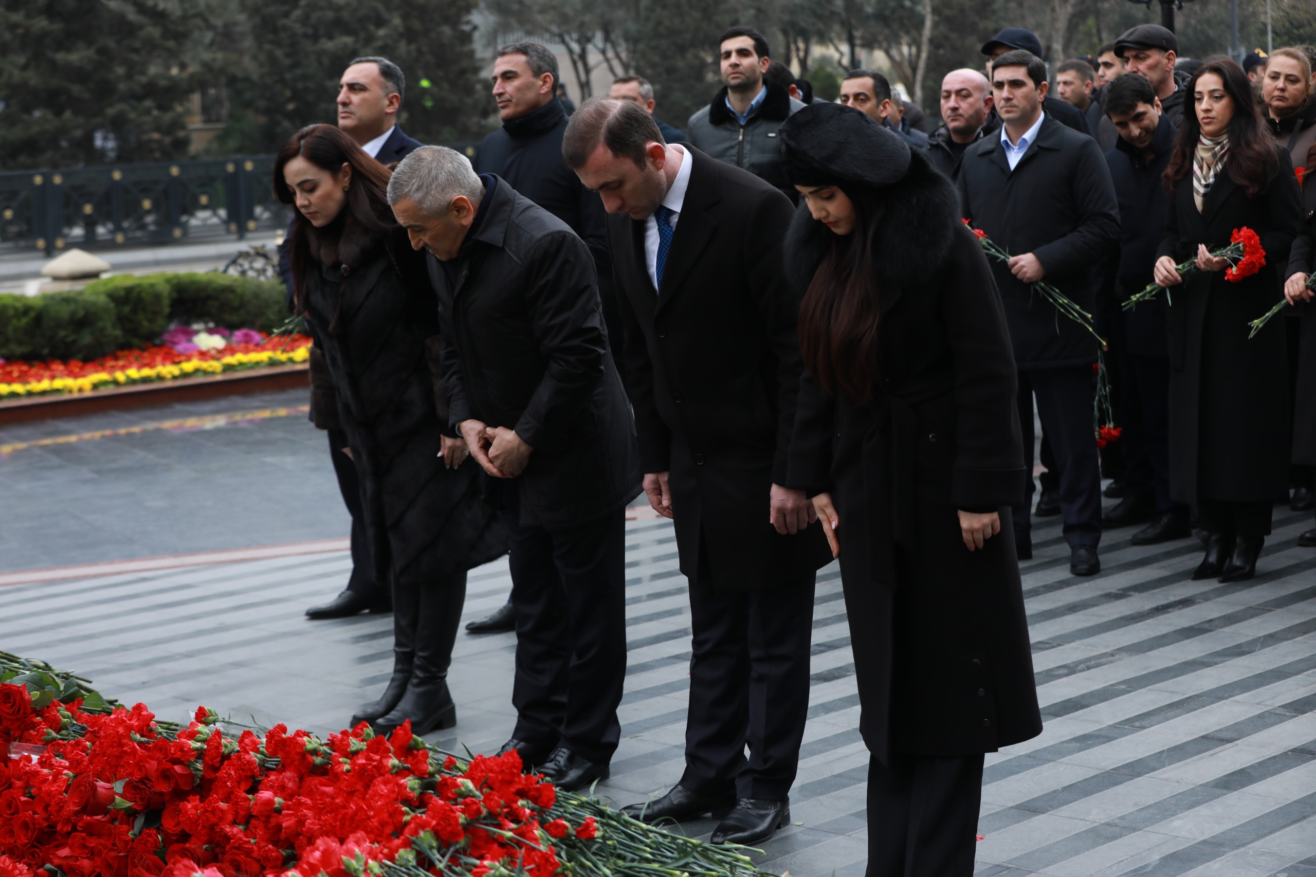 Abidənin önünə tər güllər düzərək faciə qurbanlarının əziz xatirəsini ehtiramla anıblar.