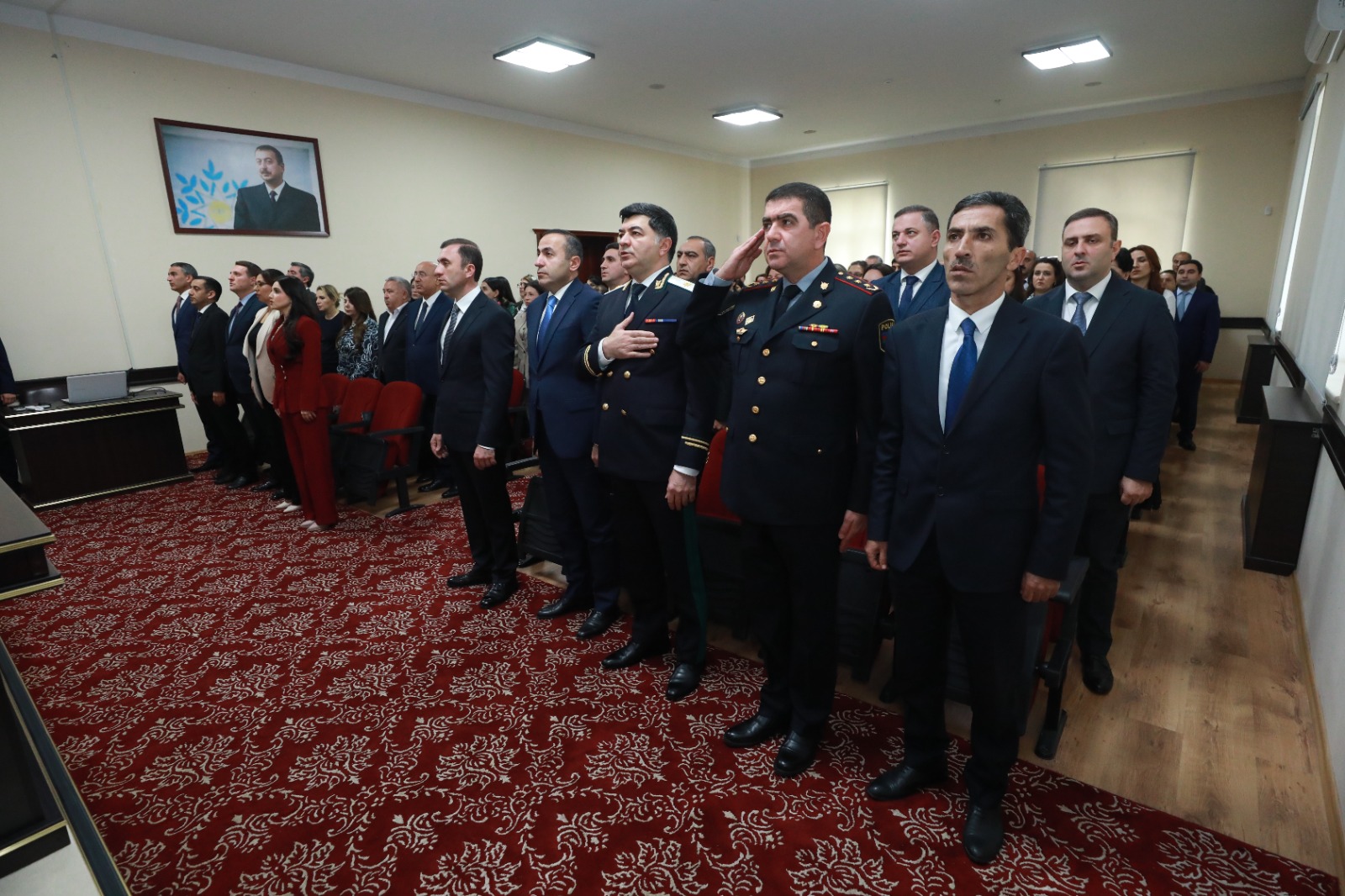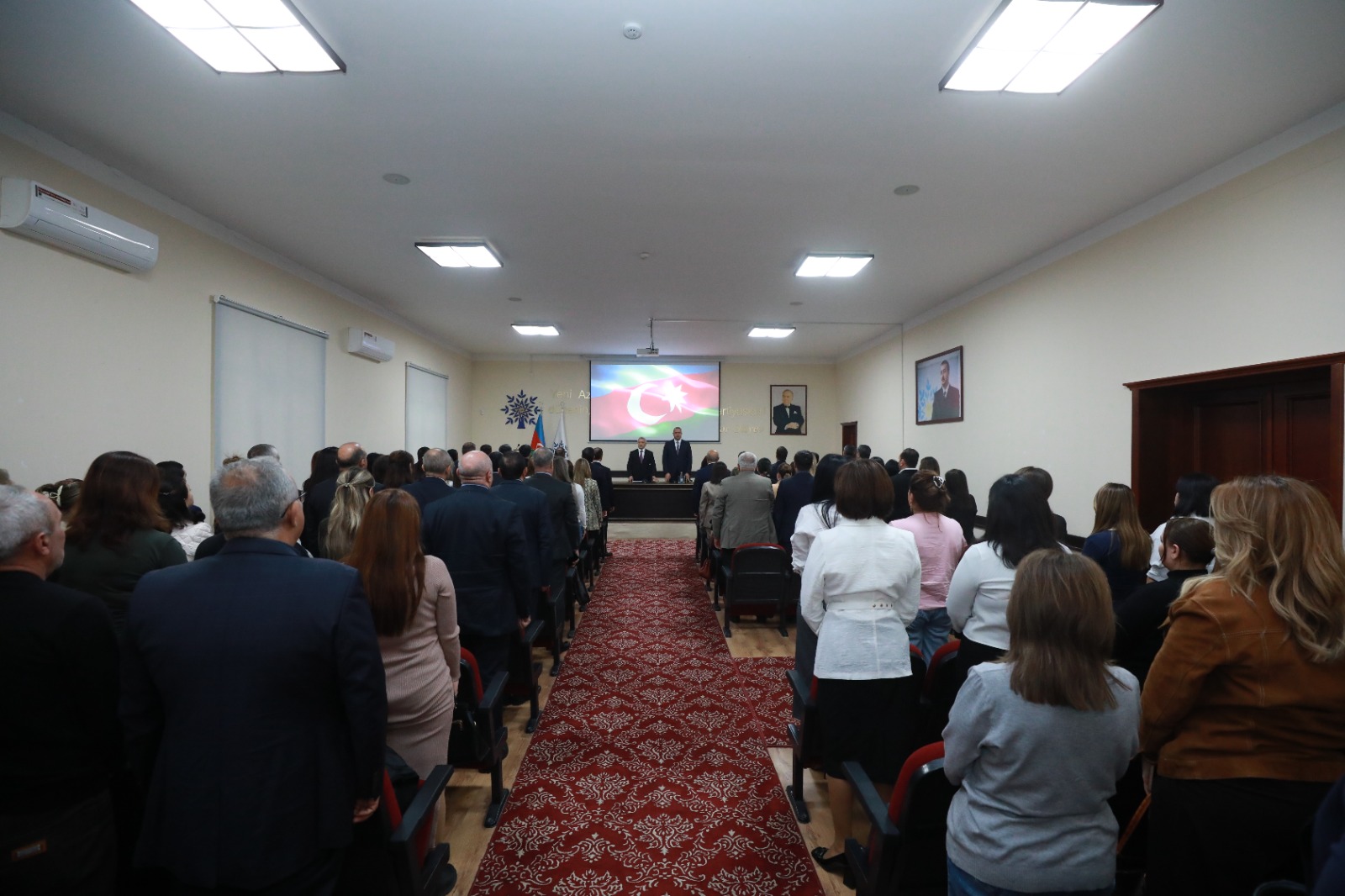 İlk olaraq tədbir iştirakçıları Ümummilli lider Heydər Əliyevin büstünün önünə gül dəstələri düzərək onun əziz xatirəsini ehtiramla yad ediblər. Azərbaycan Respublikasının Dövlət Himni səsləndirildikdən sonra tədbir iştirakçıları Ulu öndərin və ölkəmizin azadlığı, ərazi bütövlüyü və suverenliyi uğrunda qəhrəmancasına şəhid olan vətən övladlarının əziz xatirəsini bir dəqiqəlik sükutla yad ediblər.