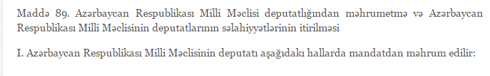 İctimaiyyət, xüsusilə də xaricdə yaşayan soydaşlarımız millət vəkilinin mandatından məhrum edilməsi tələbi ilə çıxış edirlər. Bəs hüquqi cəhətdən bu mümkündürmü?