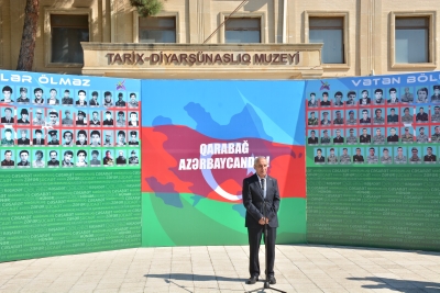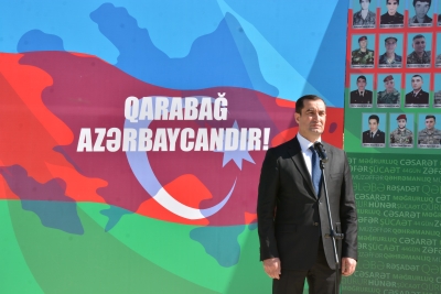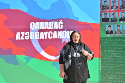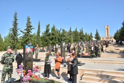 Sonra Şəhidlər xiyabanı ziyarət olunub, şəhidlərin məzarları üzərinə tər çiçəklər düzülüb və şəhid ailələrinə baş sağlığı verilib.