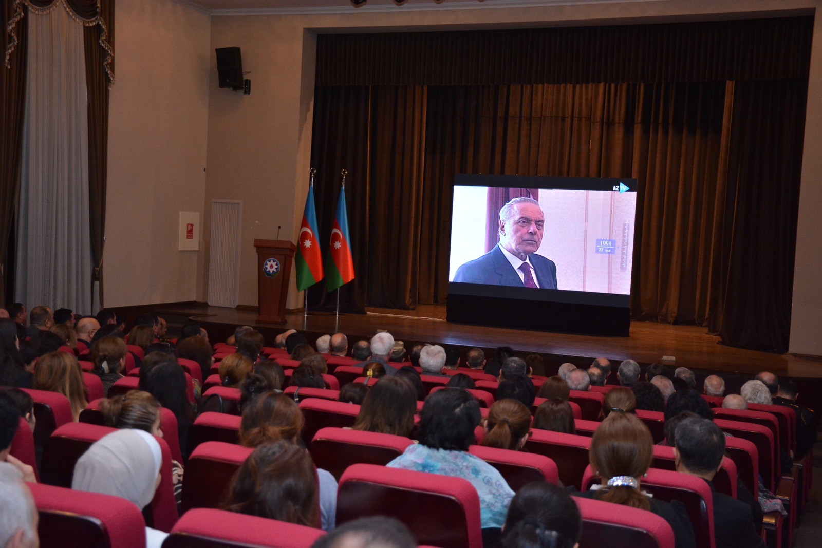 Daha sonra çıxış edənlər müstəqil Azərbaycan dövlətinin qurucusu və memarı bütün varlığı ilə vətəninə, xalqına bağlı olan böyük dövlət xadimi, Ümummilli Lider Heydər Əliyevin dövlətçiliyimizin qurulmasında, xalqımızın əmin-amanlığının təmin edilməsində və milli-mənəvi dəyərlərimizin qorunmasındakı əvəzsiz xidmətlərindən geniş söhbət açıblar. Ulu Öndər qətiyyətlilik, milli mənəvi dəyərlərə bağlılıq və ədalətlilik prinsiplərinin rəhbər tutaraq bütün həyatını xalqımızın birliyi və rifahı, ölkəmizin parlaq və firavan gələcəyi uğrunda mübarizəyə həsr etdiyini bildiriblər.