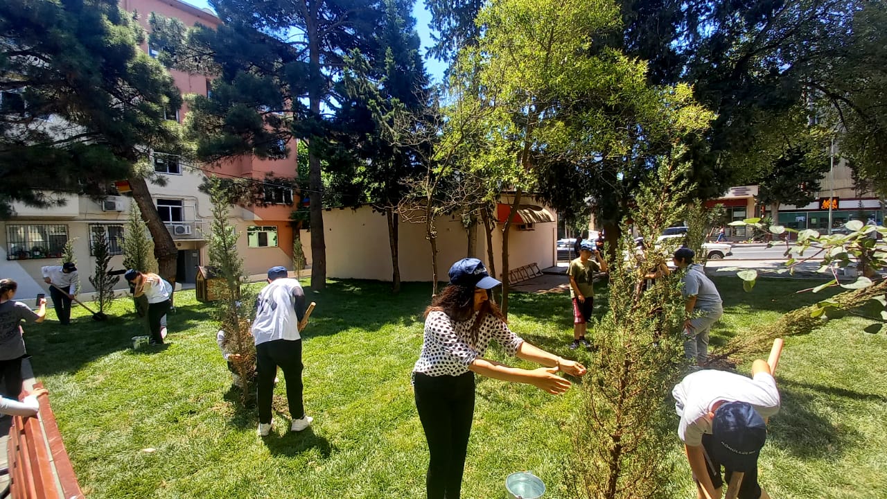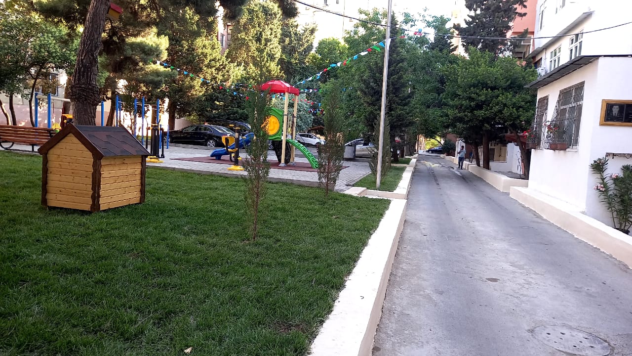 Görülmüş işlər çərçivəsində həyətə 1500 kv.m. asfalt örtüyü, 600 kv.m. qazon, 550 kv.m. tamet vurulub, 350 p.m. yeni bardürlər qoyulub, yaşıllıqların suvarılması üçün su xətləri çəkilib, mövcud yaşıllıqlar bərpa edilərək ağaclar budanıb, 50 ədəd həmişəyaşıl kollar və ağaclar əkilib.