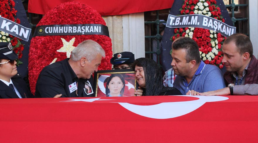 Mardin şəhərinin Midyat bölgəsində terrorçularla döyüşdə həlak olan Nefise Özsoyun Edirnedə keçirilən cənazə mərasimində qəribə hadisə baş verib.