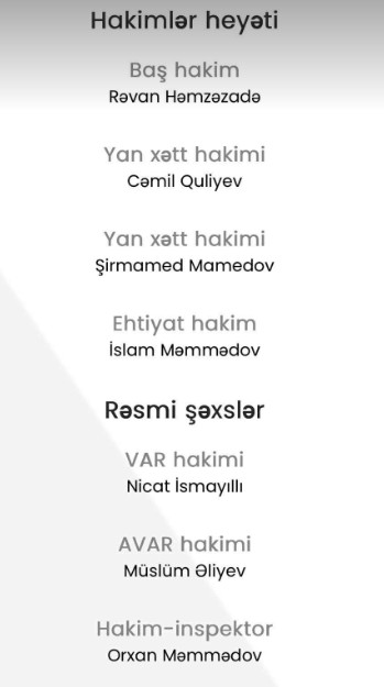 Məlumata görə, hər iki hakimin adı bu gün keçirilən “Qarabağ” - “Karvan-Yevlax” və sabahkı “İmişli” - “Turan Tovuz” matçlarından çıxarılıb.