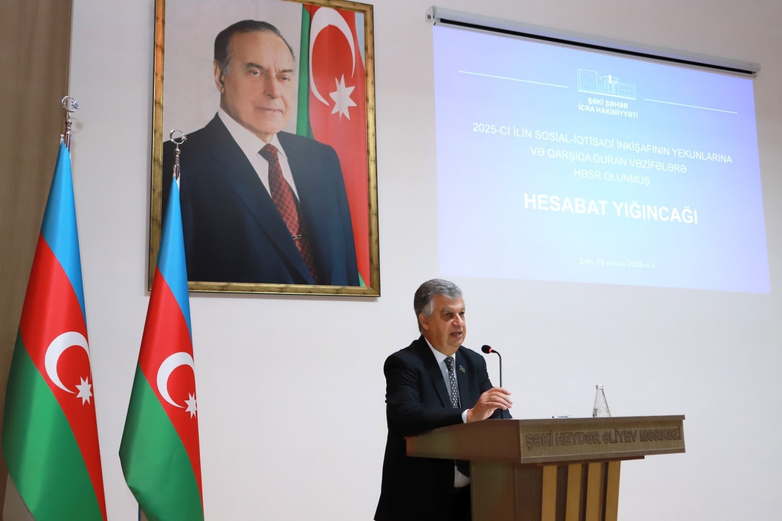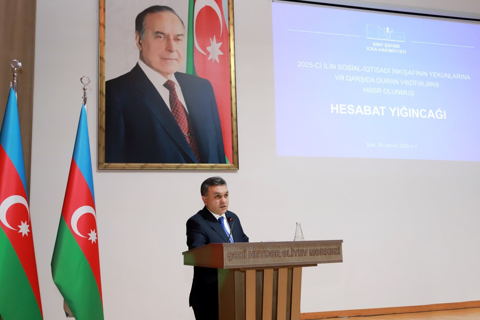 Yanvarın 9-da Şəki şəhər Heydər Əliyev Mərkəzində 2025-ci ilin sosial-iqtisadi inkişafının yekunları və qarşıda duran vəzifələrə dair Şəki Şəhər İcra Hakimiyyəti başçısının hesabat yığıncağı keçirilib.