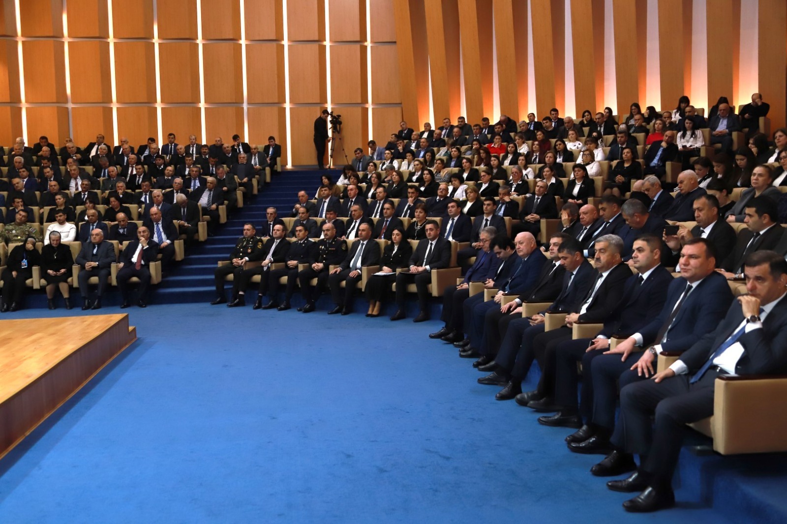 Tədbir Dövlət Himninin səsləndirilməsi ilə başlayıb. Ulu Öndər Heydər Əliyevin, Azərbaycan Respublikasının dövlət müstəqilliyi və ərazi bütövlüyü uğrunda şəhid olmuş oğul və qızlarımızın əziz xatirəsi bir dəqiqəlik sükutla yad edilib.