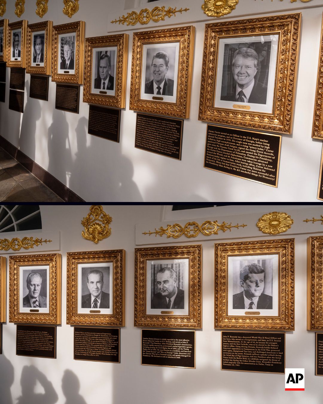 ABŞ-nin 44-cü Prezidenti Barak Obamanın portreti altında onun “Amerika tarixinin ən mübahisəli siyasi fiqurlarından biri” olduğu qeyd edilib. 42-ci Prezident Bill Klintona həsr olunmuş xatirə lövhəsində Trampın 2016-cı ildə onun həyat yoldaşı Hillari Klintonu seçkilərdə məğlub etdiyi yazılıb.