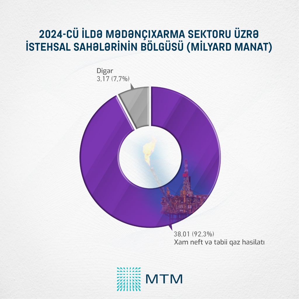 Digər hissə isə sektorun 7,7%-ni (3,17 milyard manat) təşkil edir və buraya metal filizlərinin hasilatı və digər sahələr daxildir.